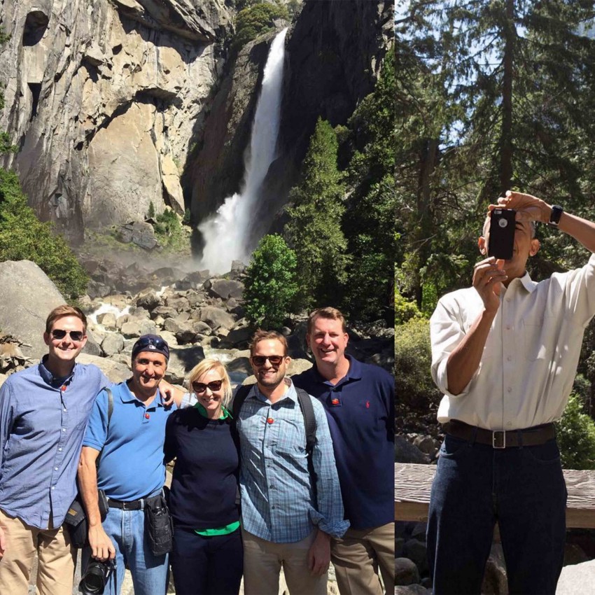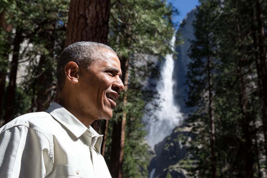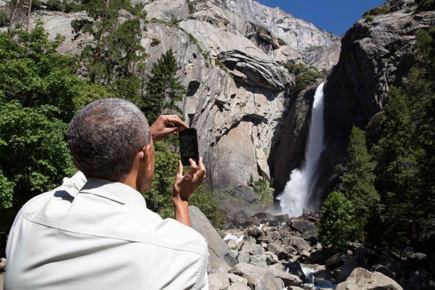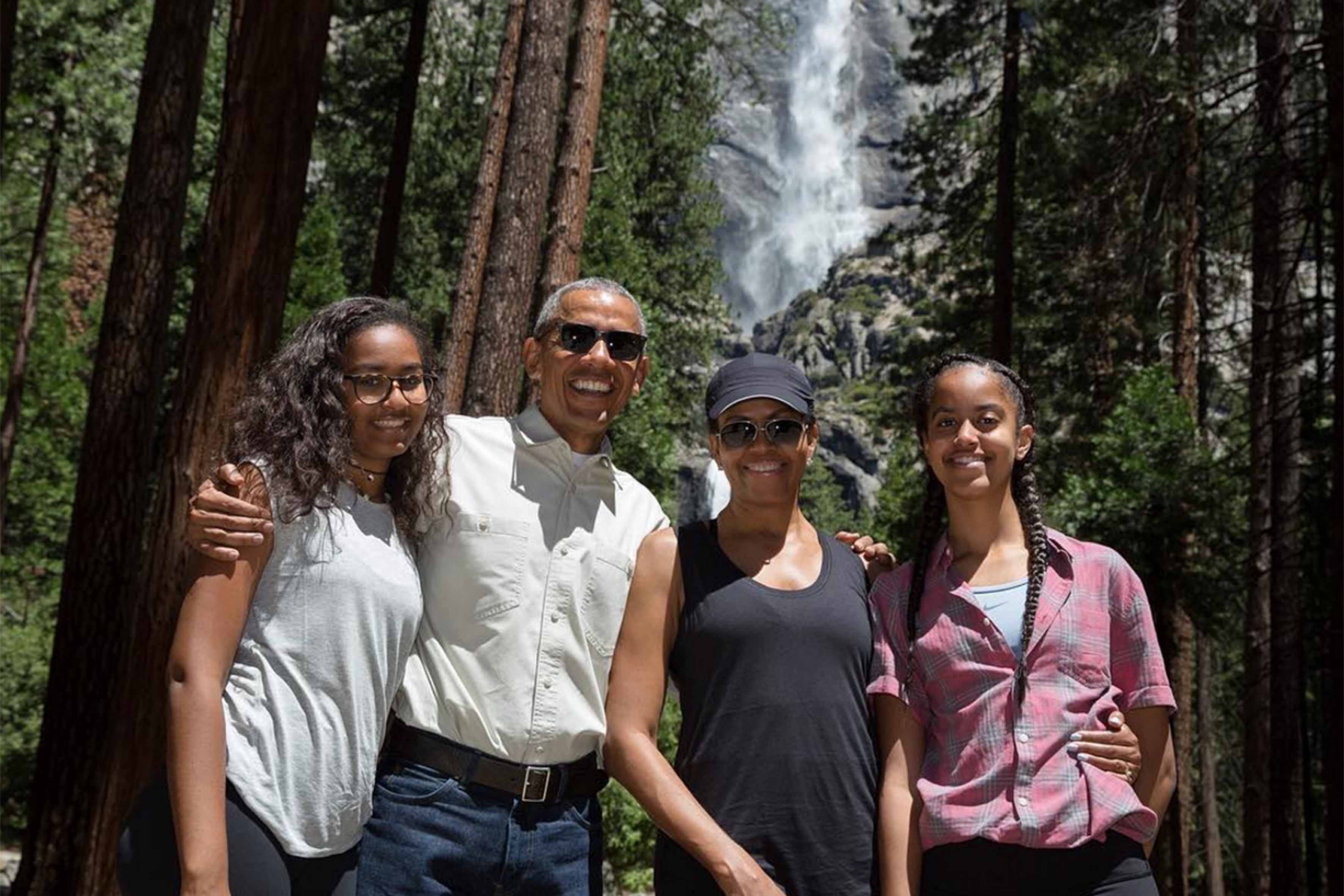 Barack Obama, a primeira-dama Michele e as filhas, Malia e Sasha, escolheram passar o fim de semana no parque natural de Yosemite, para assinalar os 100 anos do parque, situado na Serra Nevada, Califórnia.