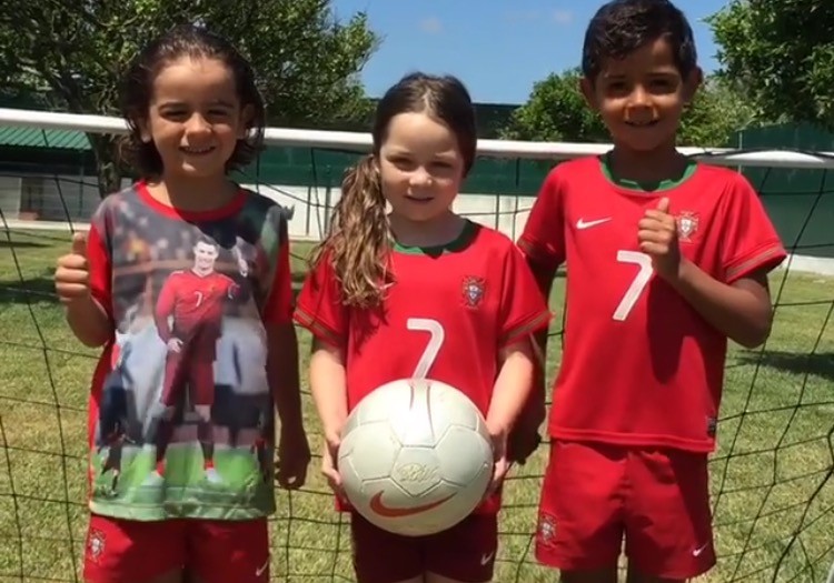 “Força Portugal”, gritam as crianças no vídeo que Dolores Aveiro partilhou no Instagram, horas antes de as quinas se estrearam no Euro 2016 ante a Islândia. O jogo está marcado para as 20 horas desta terça-feira e a família de Cristiano Ronaldo dá o exemplo patriótico nas redes sociais.