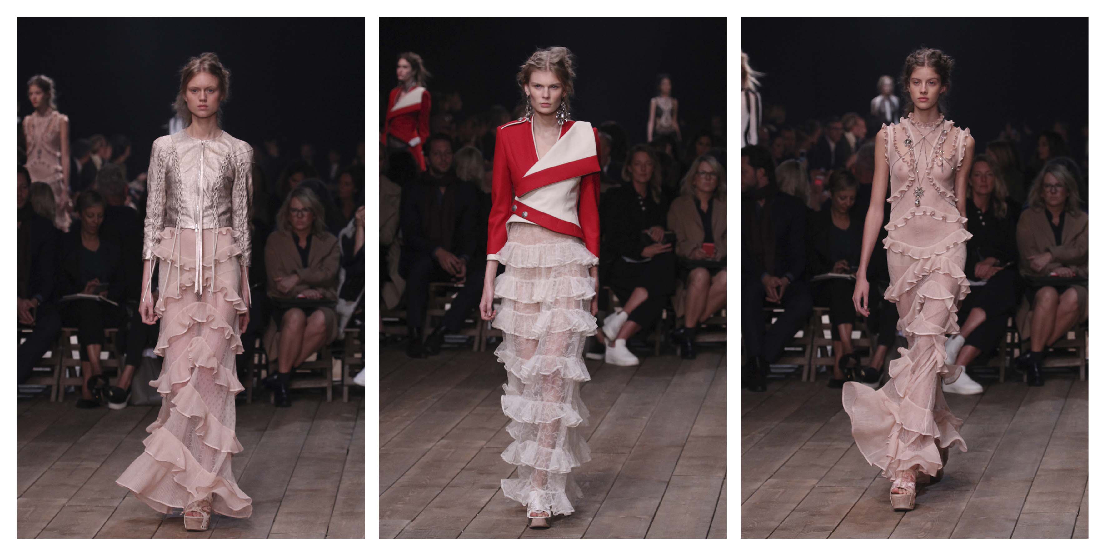 Os folhos estão de volta, a lembrar dançarinas de flamenco. Voltaram bem ao estilo latino nos mais diversos materiais, como a renda os bordados e os brocados.