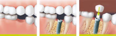 Um implante dentário é uma pequena peça feita de titânio ou de zircónio de titânio que é colocado no osso maxilar em lugar da raiz do dente natural ausente. O implante pode ser inserido cirurgicamente sob anestesia local em clientes ambulatórios. O titânio é geralmente bem tolerado pelo corpo humano e tem sido demonstrado que o osso se vincula bem ao titânio.