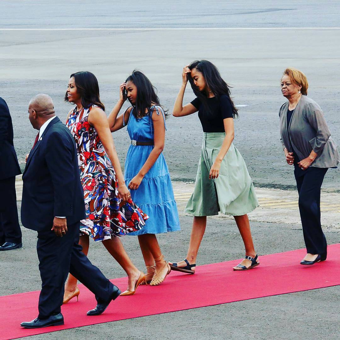 Na companhia das filhas, Malia e Sasha, e da sua mãe, Marian Robinson, a primeira dama dos Estados Unidos aterrou no passado domingo (26) na ilha de Sal por volta das 20h00 (hora local, 22h00 em Lisboa) para dar inicio à sua missão.