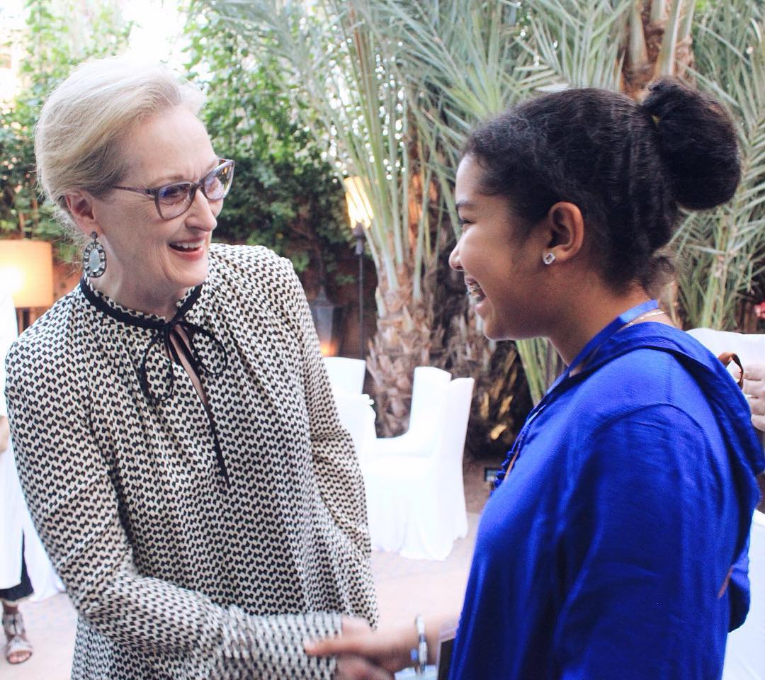 Em Marraquech, acompanhada da atriz Meryl Streep e da princesa Lalla Selma, Michelle falou sobre a campanha e sublinhou a importância “da união das mulheres para um futuro melhor”.