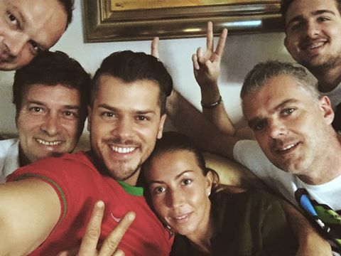Foi o que aconteceu na noite de ontem. A propósito do primeiro jogo de Portugal no Euro 2016, Mickael Carreira partilhou na sua página de Facebook uma imagem onde surge ladeado pelo progenitor e alguns amigos e, deitada no seu peito, está Laura Figueiredo.