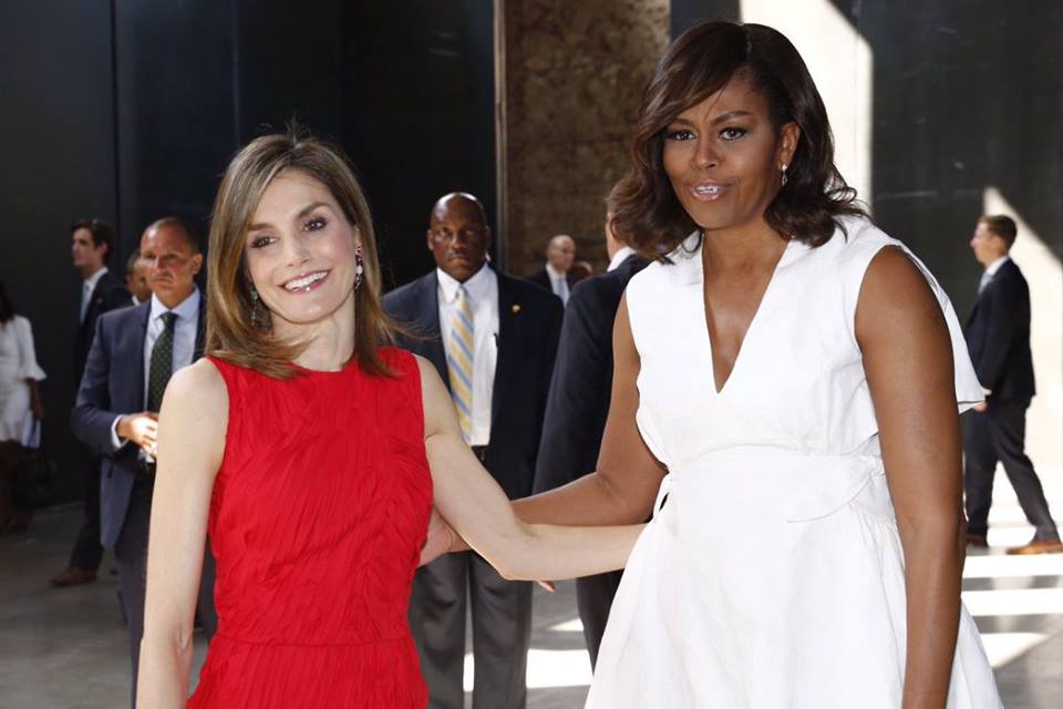 A primeira dama americana, que aterrou em Madrid esta quinta feira (30) na companhia as filhas, Malia e Sasha, e da mãe, Marian Robinson, encontrou-se com a rainha Letizia antes de discursar perante centenas de raparigas, alertando para a importância da escolarização do sexo feminino.