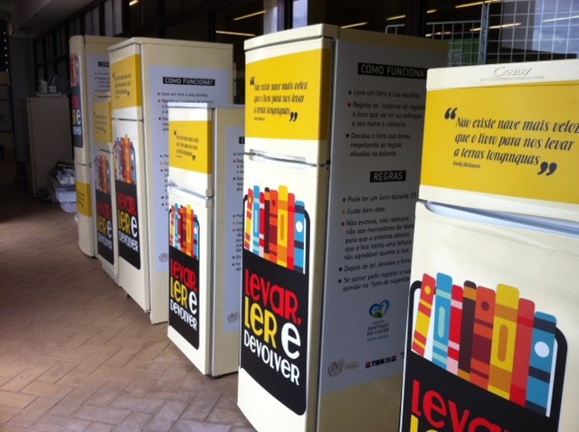 Aproveitando frigoríficos em fim de vida, os postos de leitura “Levar, Ler e Devolver” vão funcionar em espaços públicos, num regime self-service.