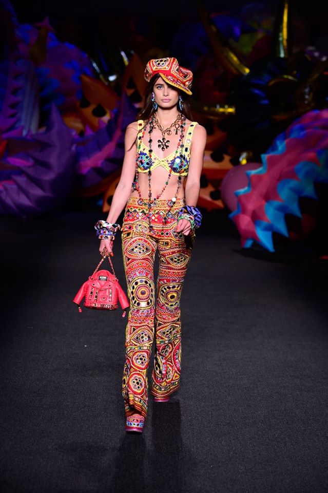Com uma coleção totalmente pensada por Jeremy Scott, a Moschino levou, pela primeira vez, um desfile às passerelles de Los Angeles, apresentando a maior festa da Califórnia com a presença de muitos famosos.