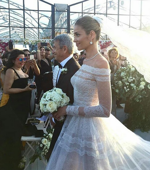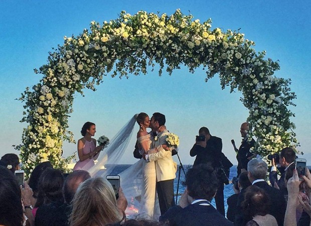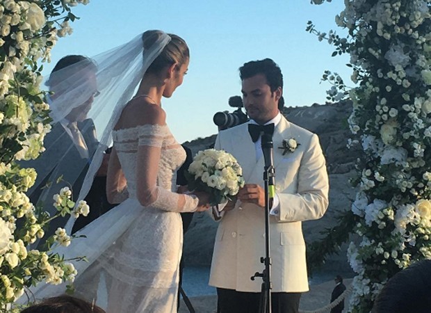 Na sexta-feira (8) aconteceu a cerimónia ecuménica – uma vez que a modelo é católica e o noivo muçulmano – com quase mil convidados. O local escolhido foi a praia de Lia, na Grécia.