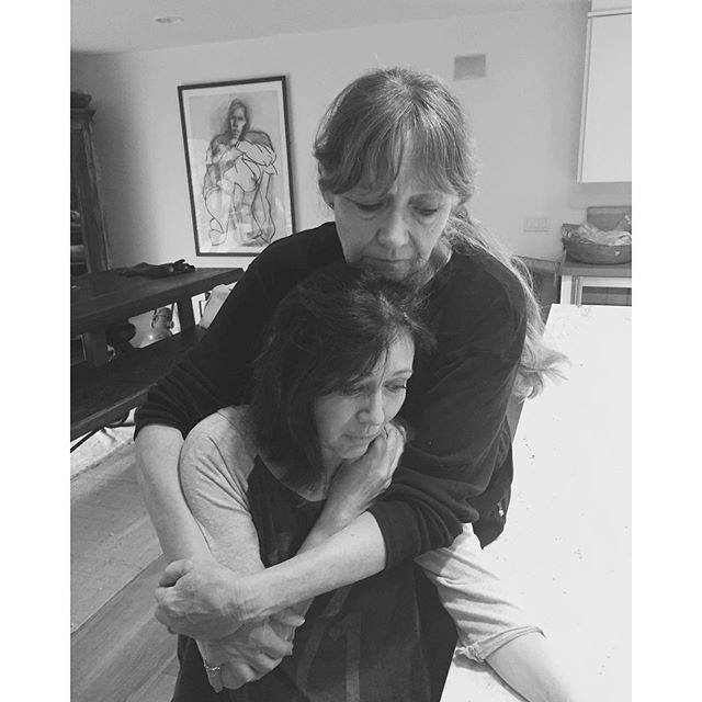 Rodeada de amigas, a atriz de 45 anos não conseguiu conter as lágrimas durante o processo.