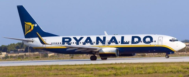 A companhia aérea low-cost Ryanair, publicou esta quarta-feira, 27, na várias redes sociais, uma fotografia de um avião que, em vez de ter o nome da empresa na lateral do aparelho, tem escrito ‘Ryanaldo’, que não é mais do que uma junção da denominação da empresa com o nome do jogador do Real Madrid.
