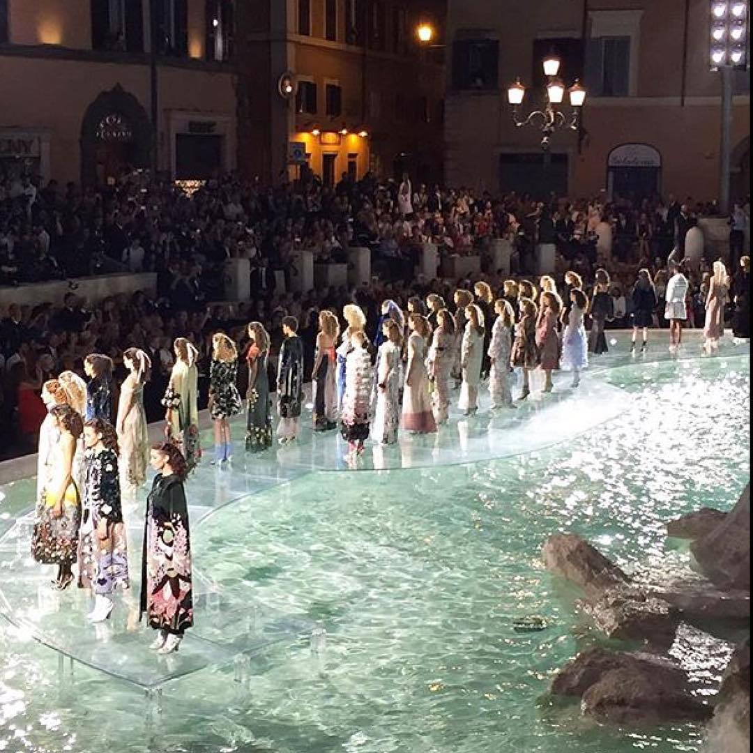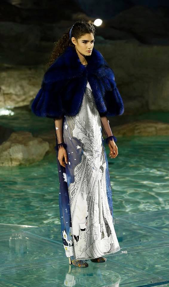 Na passerelle de vidro, montada sobre a água da famosa fonte, as modelos desfilaram com vestidos inspirados em ‘Lendas e Contos de Fadas’ que mais pareciam idealizados para princesas contemporâneas.