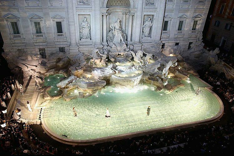 Um dia após o encerramento da Semana de Moda de Paris, Karl Lagerfeld desembarcou em Roma esta quinta-feira (7) para celebrar os 90 anos da Fendi num desfile inédito na Fontana di Trevi, o ponto turístico cujo restauro a marca italiana ajudou a financiar.