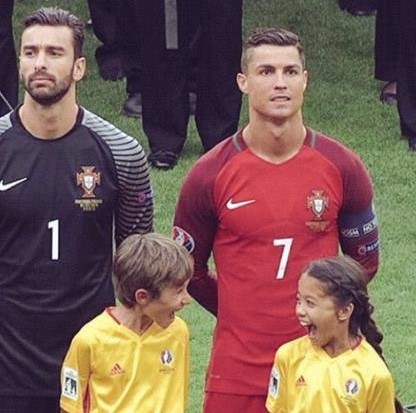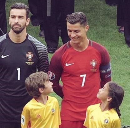 Uma menina ficou à frente de Cristiano Ronaldo e teve a seu lado um rapaz, que entrou com o guarda-redes Rui Patrício. Em comum a adoração pelo capitão da equipa das quinas. Pelo menos a avaliar pelas imagens, que já se tornaram virais na internet.