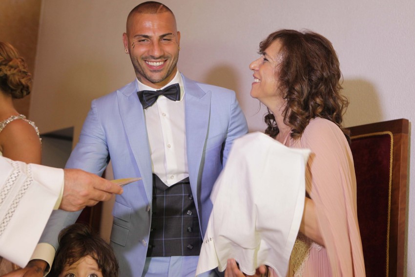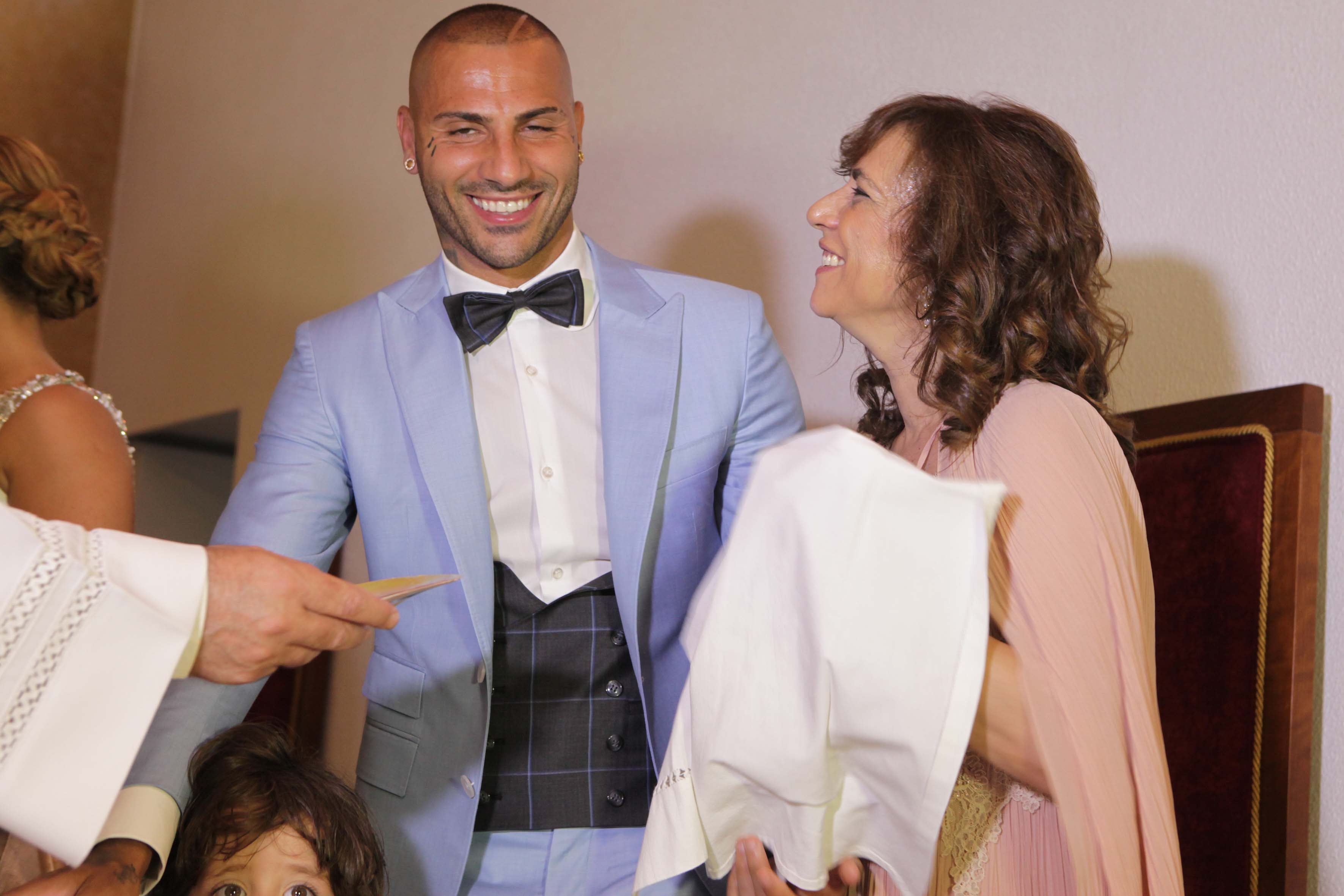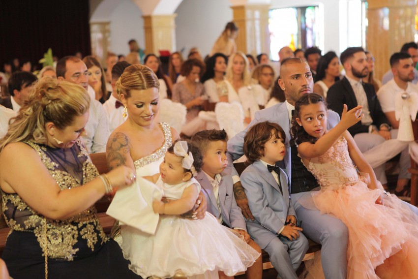 O jogador, que pertence atualmente ao clube turco Besiktas, entrou na igreja de mãos dadas com a filha mais velha Ariana, de seis anos, fruto de uma anterior relação, e com o filho Ricardo, de 3 anos.