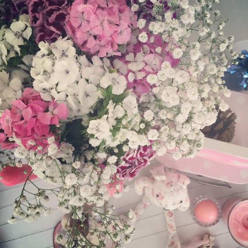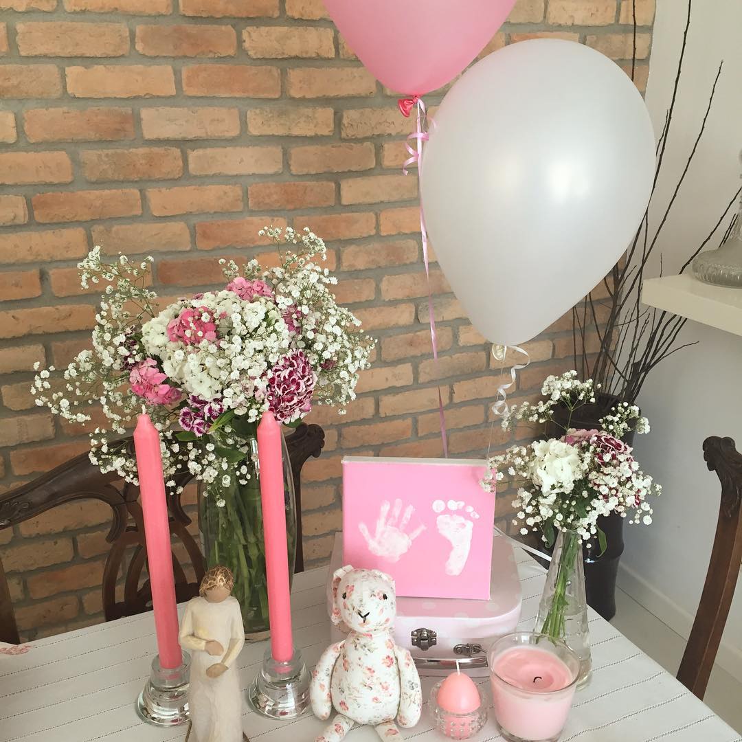 Decorado com os tons rosa e branco, o chá de bebé aconteceu na tarde de domingo (10) e não contou com a presença do pai da menina, o ator Gonçalo Diniz.