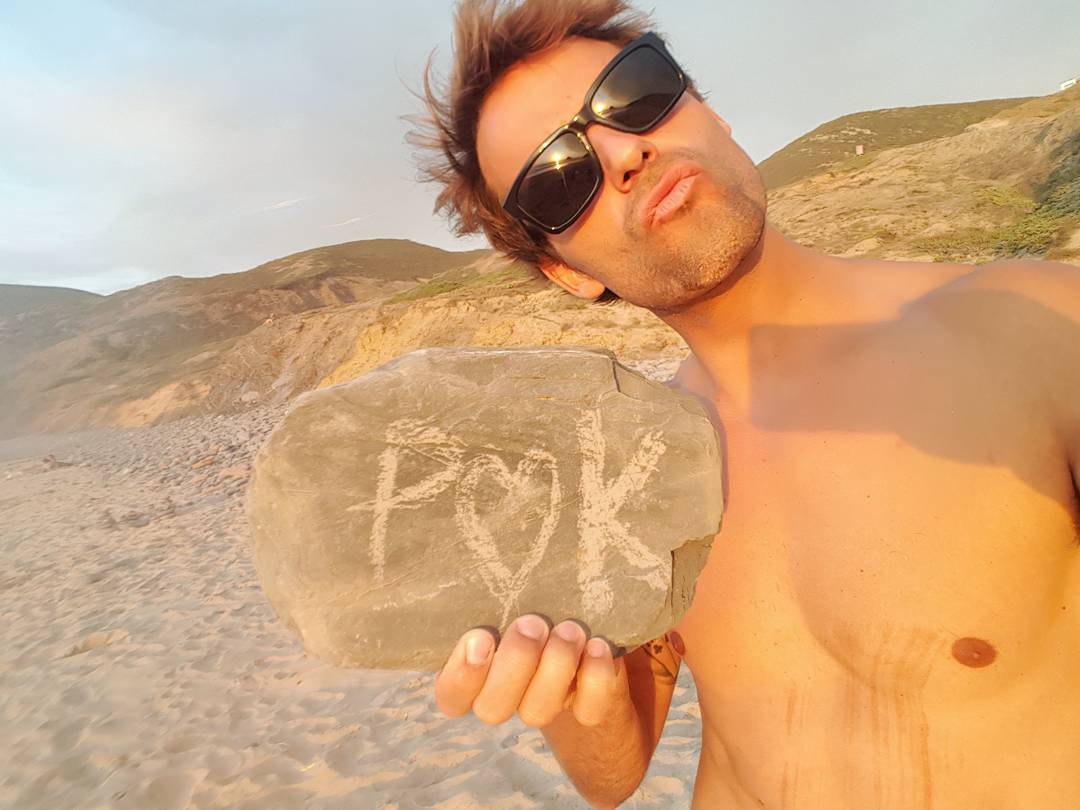 Numa praia, outra das suas paixões, Pedro Guedes “tatuou” numa pedra a primeira letra do seu nome e do da namorada, divididas por um coração. “Saudades da minha miúda. És perfeita”, escreveu na legenda.