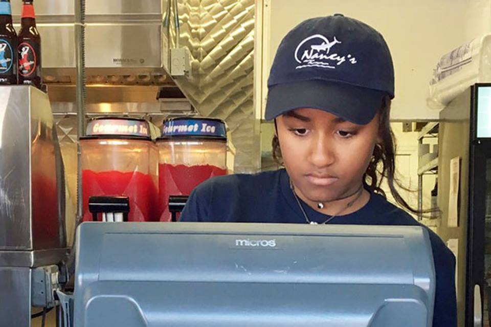 Sasha Obama tem apenas 15 anos mas trocou os luxos da Casa Branca por um emprego de verão, no balcão do restaurante Nancy’s.