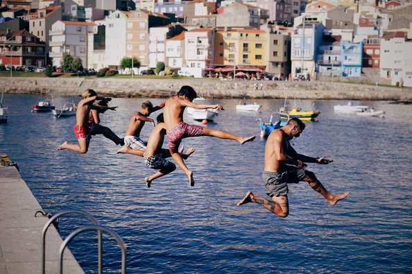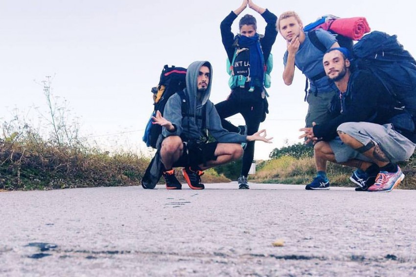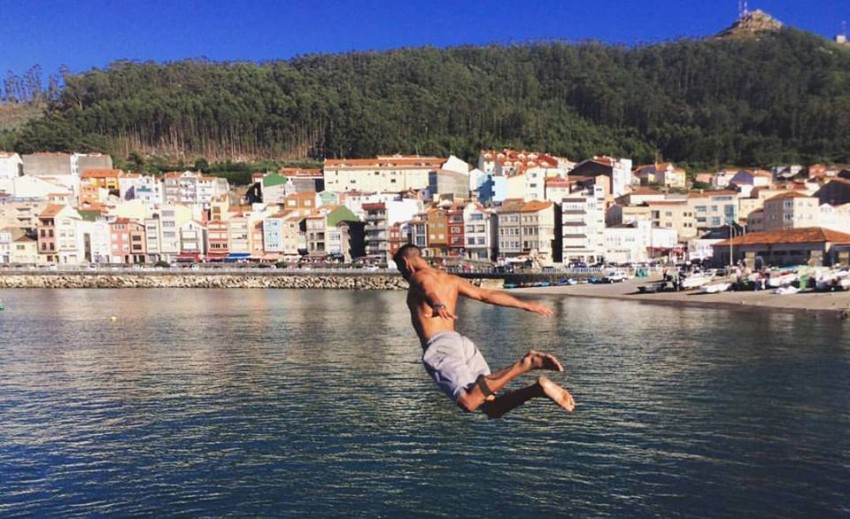 Enquanto Mafalda tem publicado fotografias mais artísticas, Pedro aparece a saltar para o rio e a fazer exercício, mesmo depois de 22 km a andar.