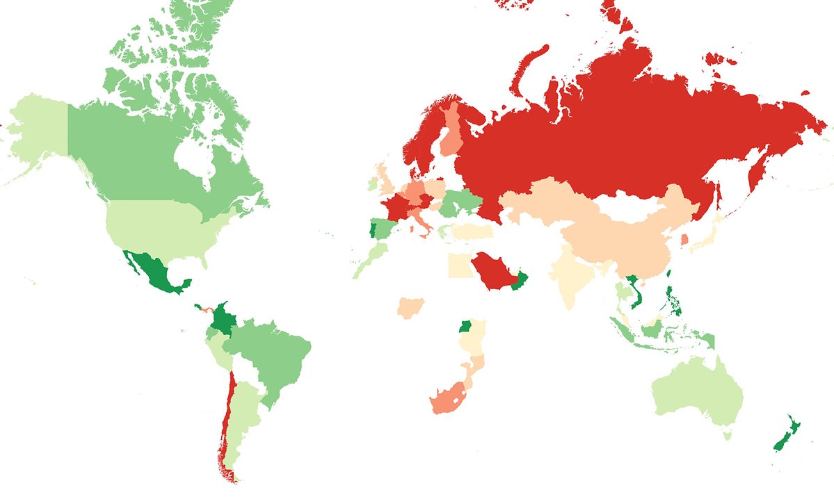 O jornal The Independent criou um mapa mundial baseado nas classificações dos países no ranking.