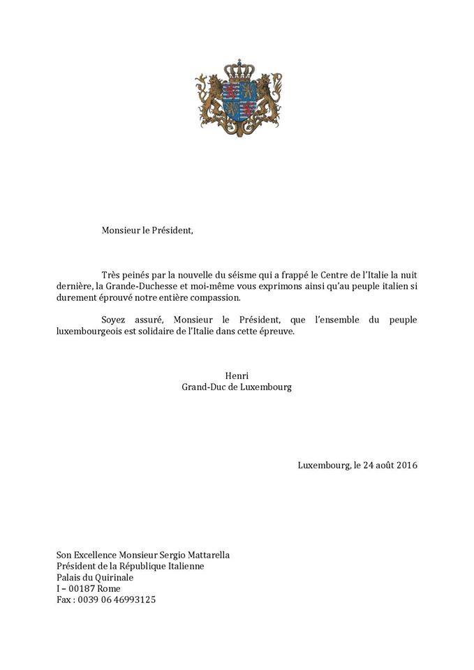 Também outras casas reais europeias fizeram questão de dar as condolências aos altos representantes de Itália: