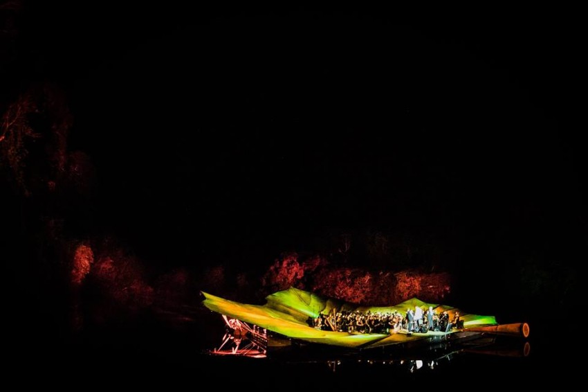 O palco, gigantesco, foi montado a meio do rio Negro na Amazónia. Os músicos, a orquestra, o coro da Amazónia e os convidados, num total de quase 100 pessoas, estavam no palco. A ideia era que flutuasse mas a falta de água no rio, devido à seca e às alterações climáticas, impediu isso. O rio ficou a 2,5 metros do normal e o material que deveria ser transportado de barco teve de seguir em barcaças (que não tocavam no fundo) e “à mão”.