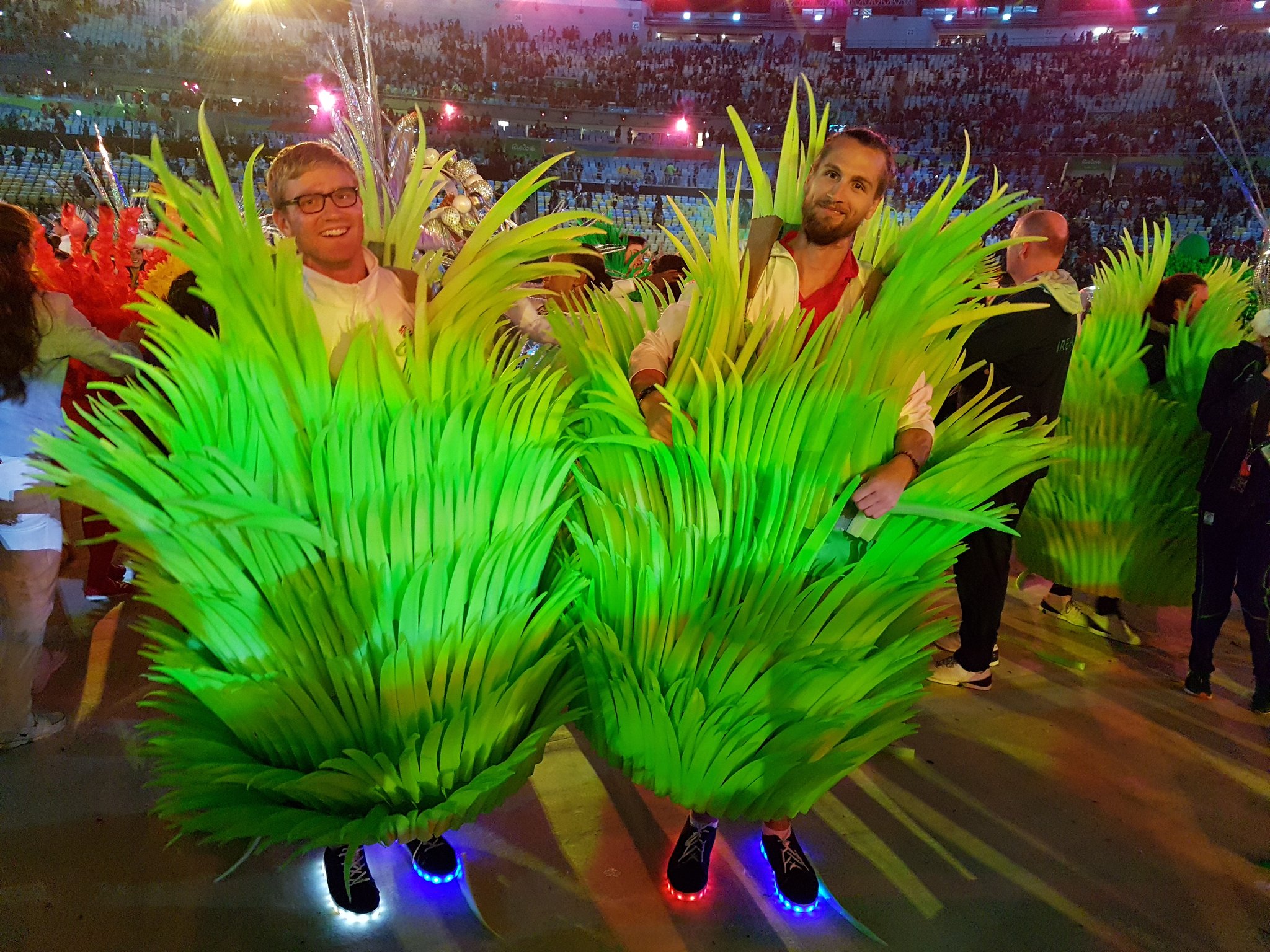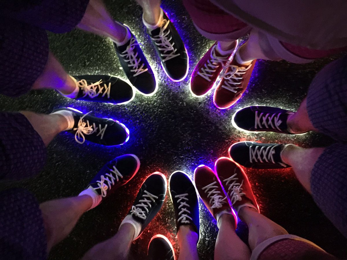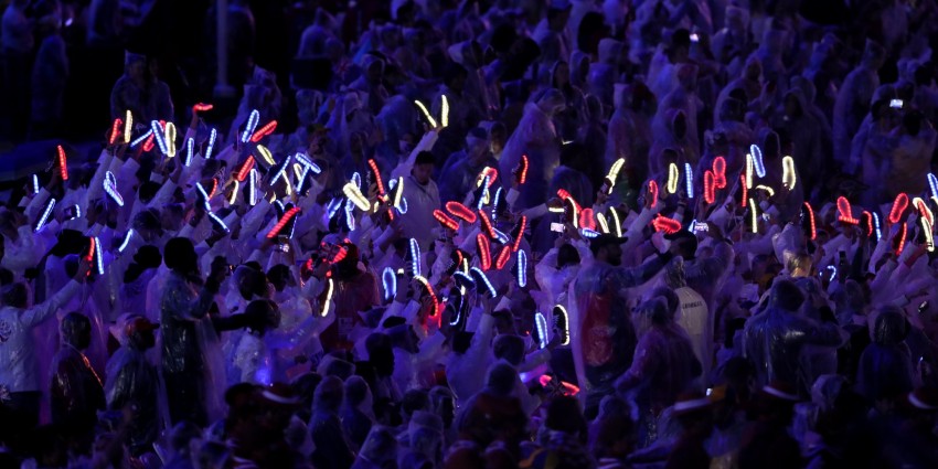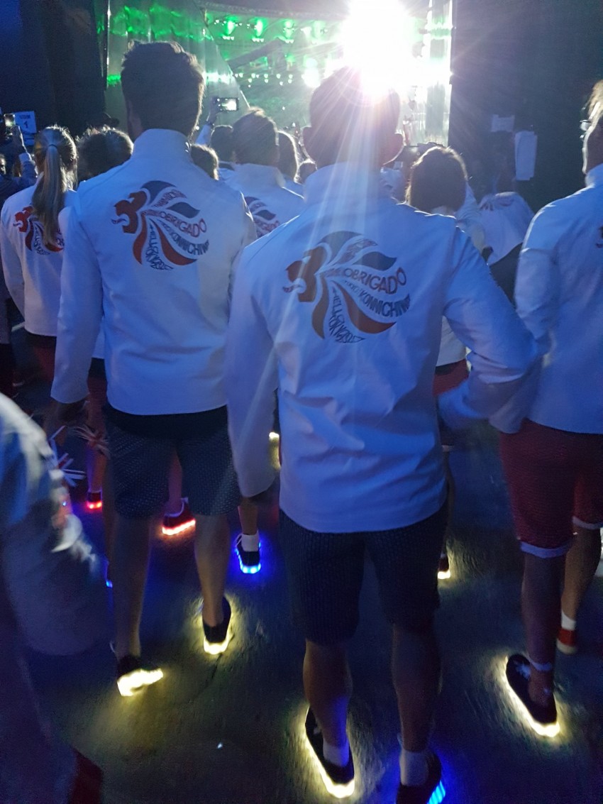 O calçado tem luzinhas, como se vê nalguns ténis das crianças, que mudavam entre as cores da bandeira do país: vermelho, branco e azul. Os atletas chegaram mesmo a tirar as sapatilhas e usaram-nas como lanterna ou isqueiros, como se estivessem num concerto.