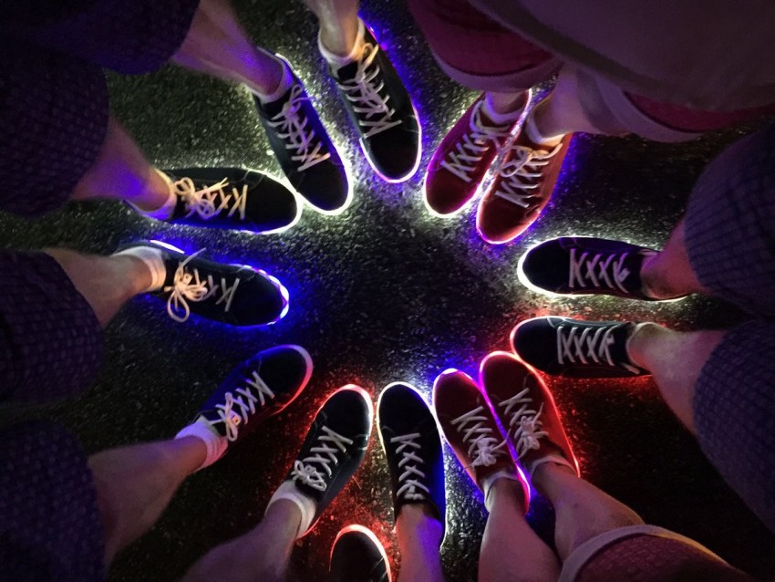 Cada sapatilha é carregada com um cabo USB e tem autonomia para piscar durante quatro horas seguidas. Depois é só recarregar quando for preciso usá-las.