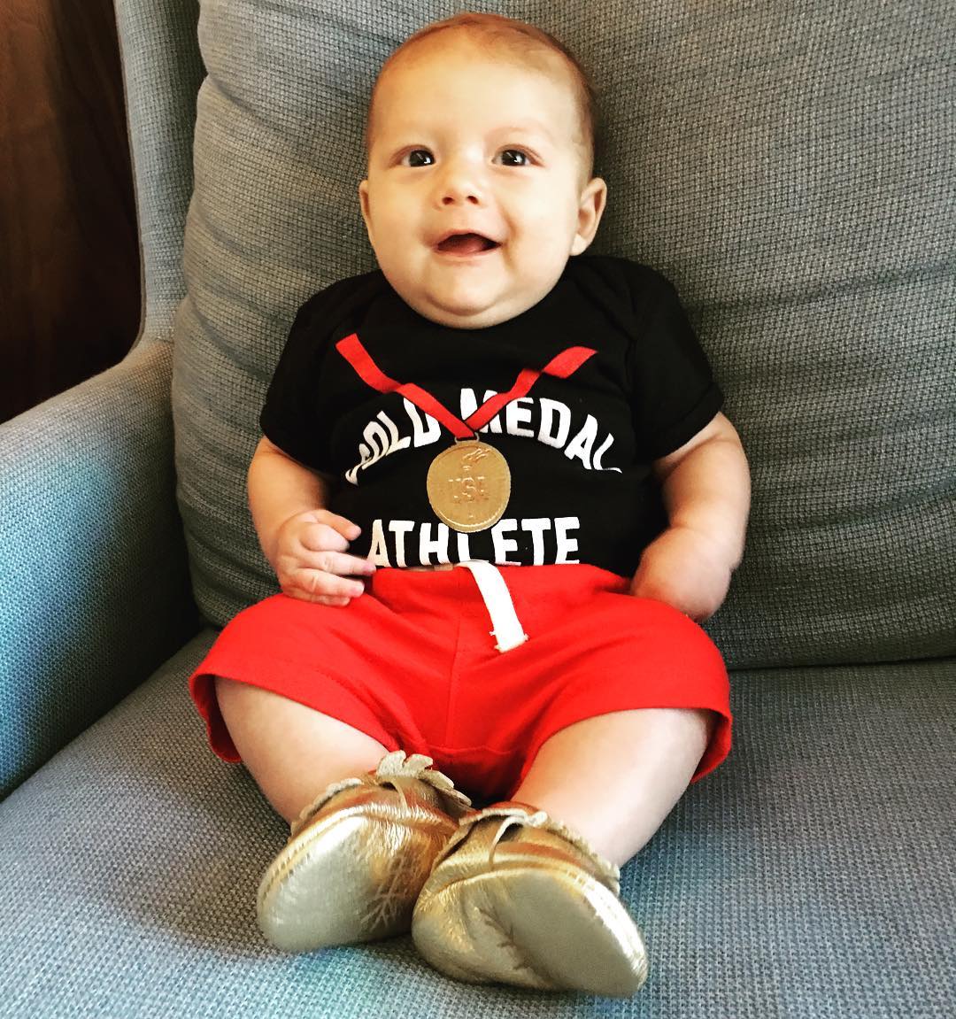 Coincidência ou não, o filho bebé do atleta pode ter algo a ver com estas conquistas. É que Boomer, de três meses, usou uns sapatos dourados, pouco antes da prova que decorreu na madrugada desta sexta-feira (hora portuguesa).