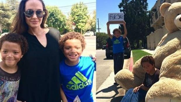O que seria apenas uma lição de vida para os meninos, transformou-se num momento incrível e inesquecível pois a pessoa que parou para comprar o urso gigante foi nada mais nada menos que Angelina Jolie acompanhada da sua filha, Shiloh.