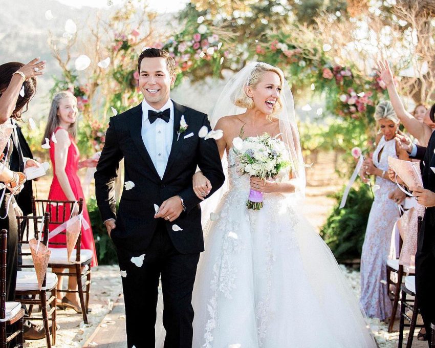 Recorde-se que o casal, que contracenou no filme ‘Escolha Perfeita’, começou a namorar em 2013 e estavam noivos desde o início do ano. Este é o segundo casamento de Anna Camp, que se divorciou de Michael Mosley pouco tempo antes de assumir o namoro com Skylar, de 28 anos. Veja as fotos do casamento: