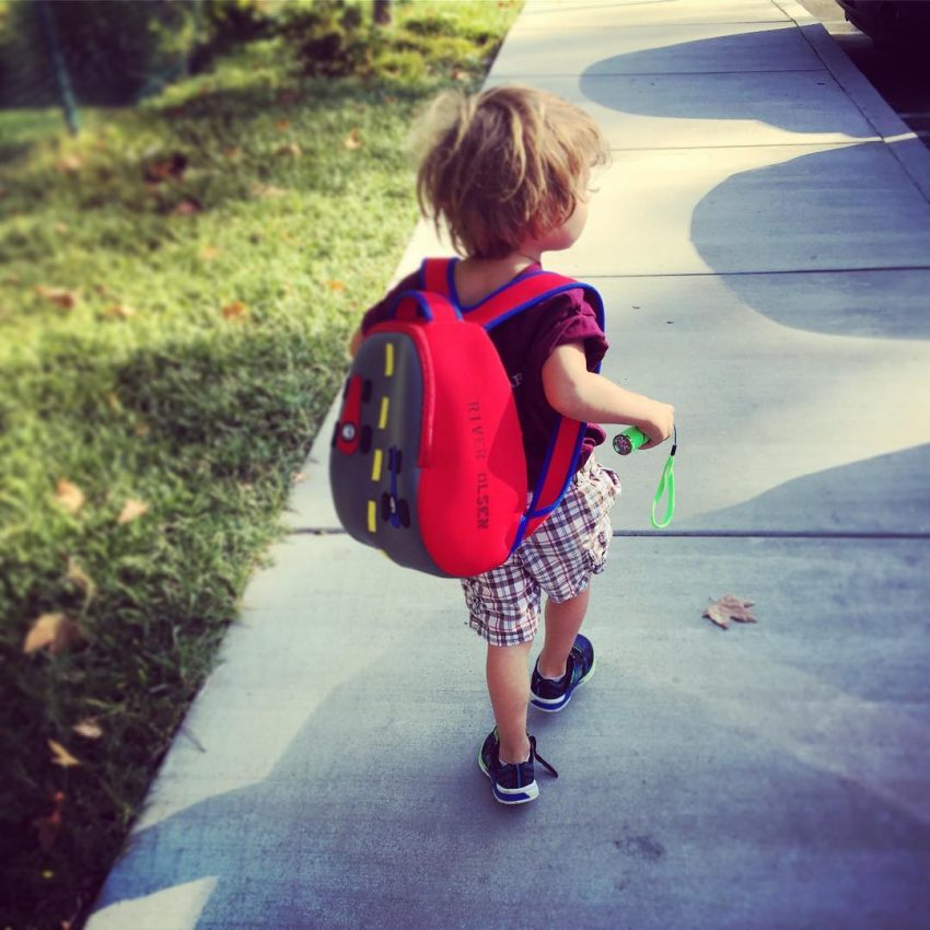 Orgulhosa da decisão do filho, Daniela mostrou uma imagem onde o menino “marcha confiante até a aulinha dele”.
