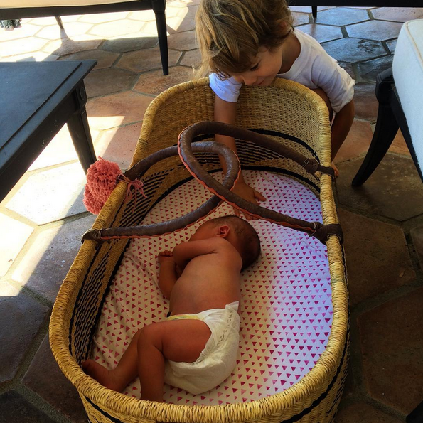 Numa publicação que fez no Instagram, aparece com Sierra ao colo, assim como a cunhada Sarah Wright tem a filha Esme Olivia, fruto da relação com o ator Eric Olsen, nos braços.