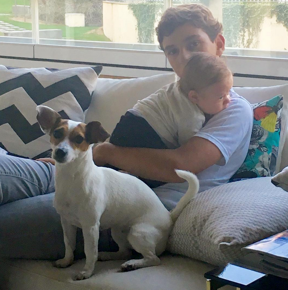 Na fotografia aparecem os manos mais velhos a olharem embevecidos para o bebé. Mateus está cada vez mais parecido com os pais, de cabelo loiro e olhos claros. O menino aparenta ser muito sorridente e fotogénico. Em muitas das imagens que Filipa partilha, Mateus faz uma ‘parceria’ irresistível com a cadelinha da família.