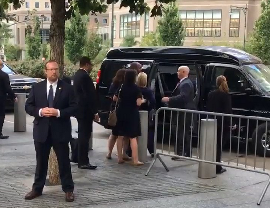 Hillary teve uma quebra de tensão devido ao calor excessivo, depois de discursar na cerimónia de homenagem às vítimas dos atentados terroristas, no Ground Zero, local onde até 2001 existiam as Torres Gémeas. Teve de sair a meio, levada a braços pela sua equipa. Ao entrar na carrinha foi filmada por um apoiante a cambalear.