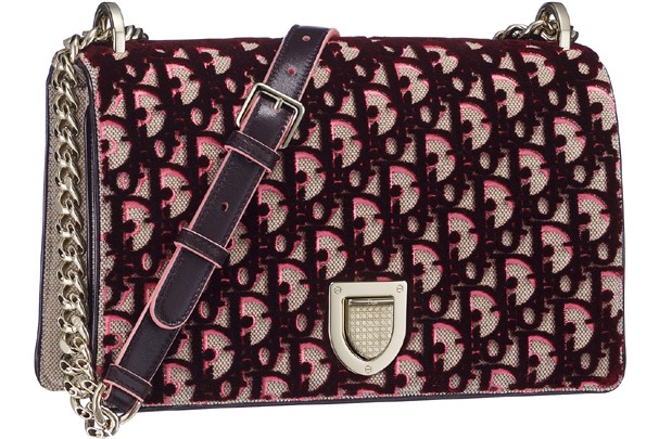 As carteiras Diorever são em couro metalizado e com cores vibrantes. A coleção tem ainda outra novidade: a nova Diorama, toda trabalhada em veludo bordado Dior Oblique.