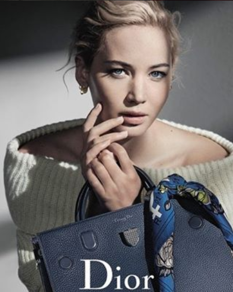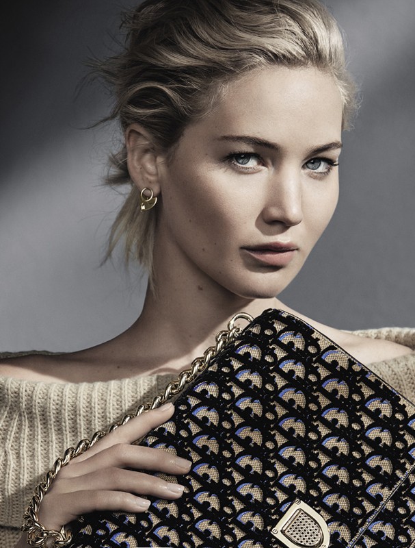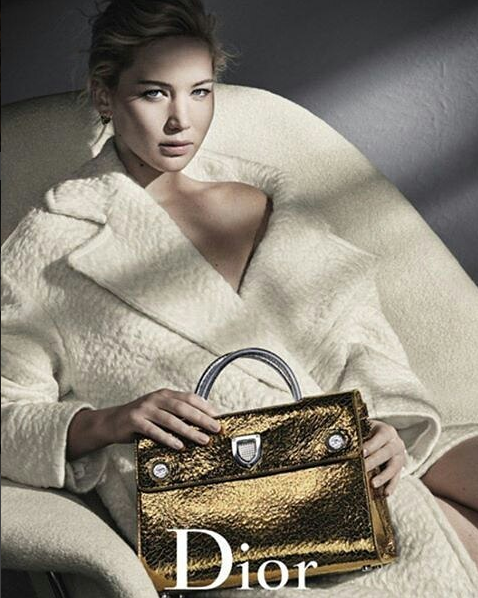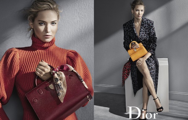 A coleção é de Outono-Inverno 2016/17. Os artigos são malas de senhora. A marca é Dior. E Jennifer Lawrence é a protagonista.
