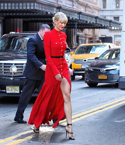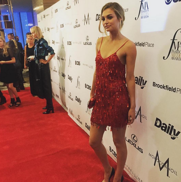 Enquanto a maioria optou pelo preto, Karlie Kloss arrojou na escolha de um vestido vermelho para assistir à 4ª gala anual dos Fashion Media Awards.