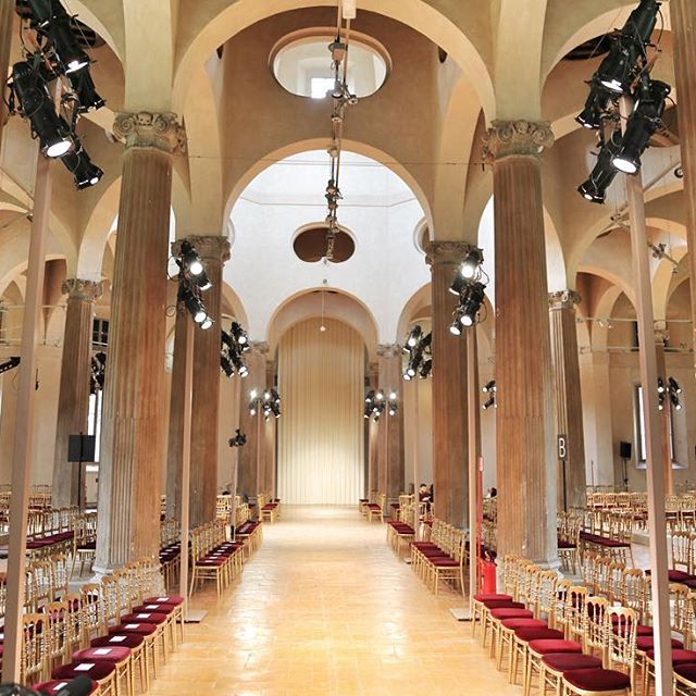 Entre folhos, bordados, cor e muito glamour, o desfile de apresentação da coleção Primavera/Verão 2017 teve como pano de fundo a Rotonda della Besana, um conceituado ponto turístico de Milão.