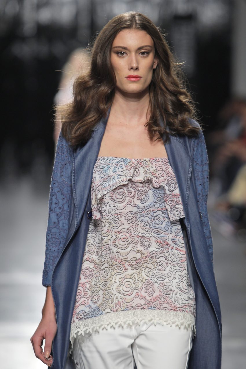 Uma “mulher doce, mulher menina” foi a base do trabalho da criadora, materializado em “tons pastéis: verde água, rosa, a fazer lembrar os macarrons”. “O amor, a inspiração num cruzeiro no Mediterrâneo, a pensar em Cannes, Santorini, com o pôr do sol lindo e a água do mar”, serviu de inspiração à marca focada numa “mulher muito feminina e internacional”.