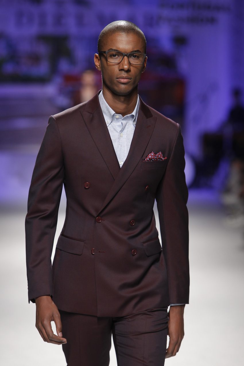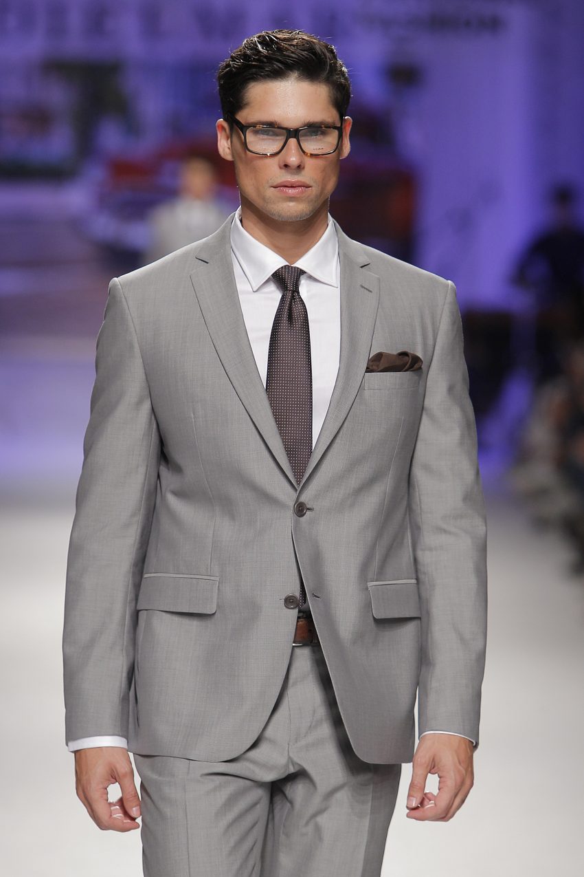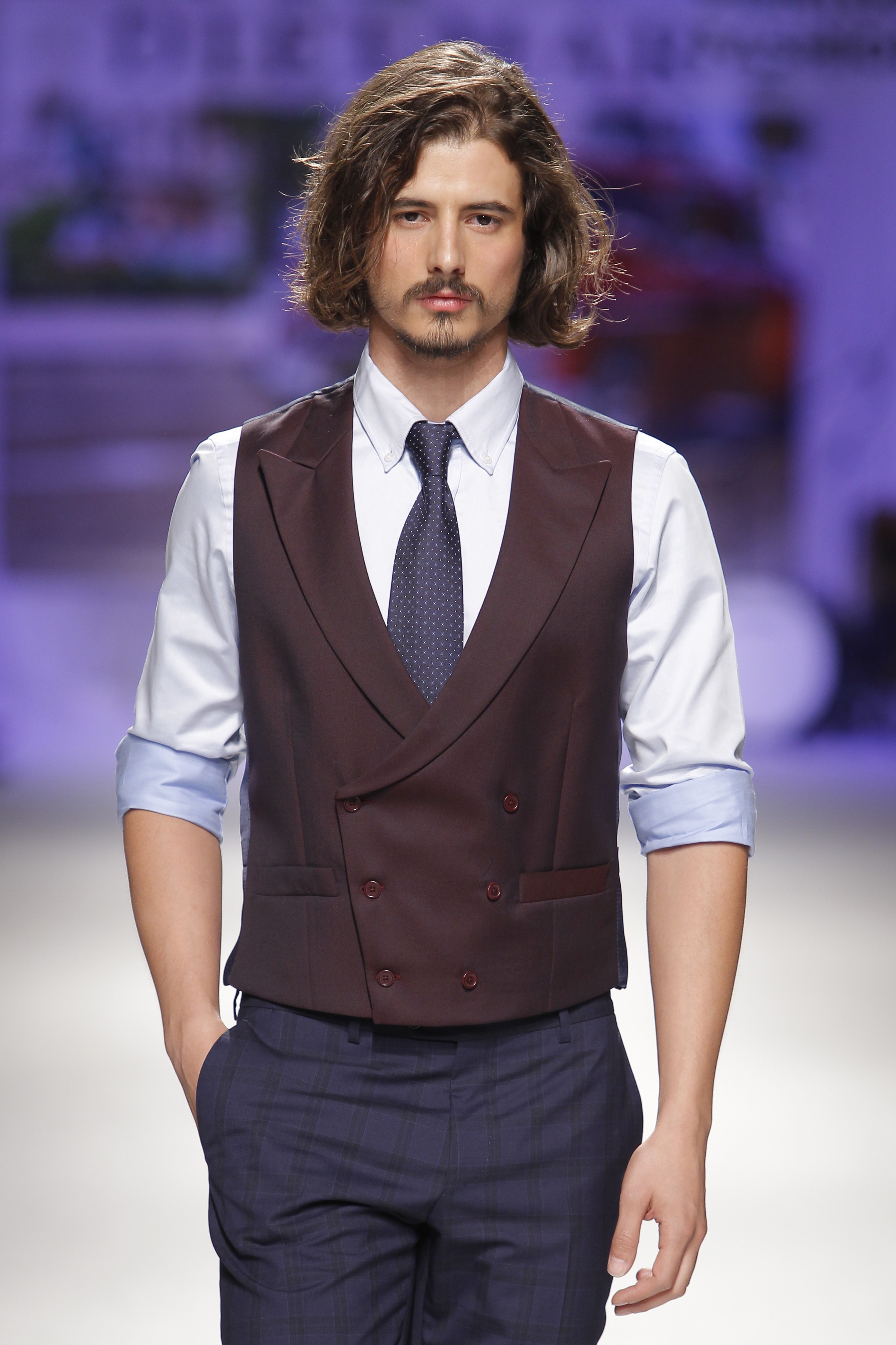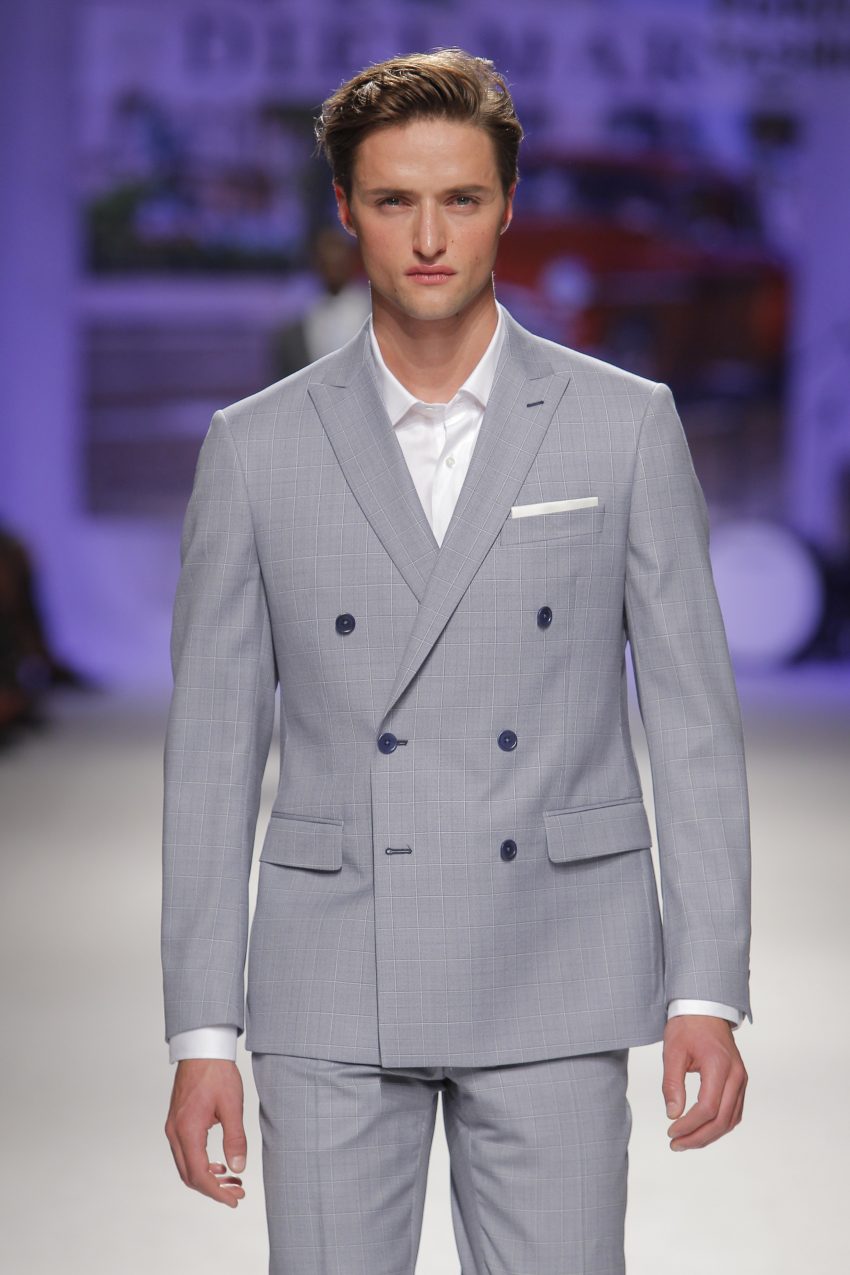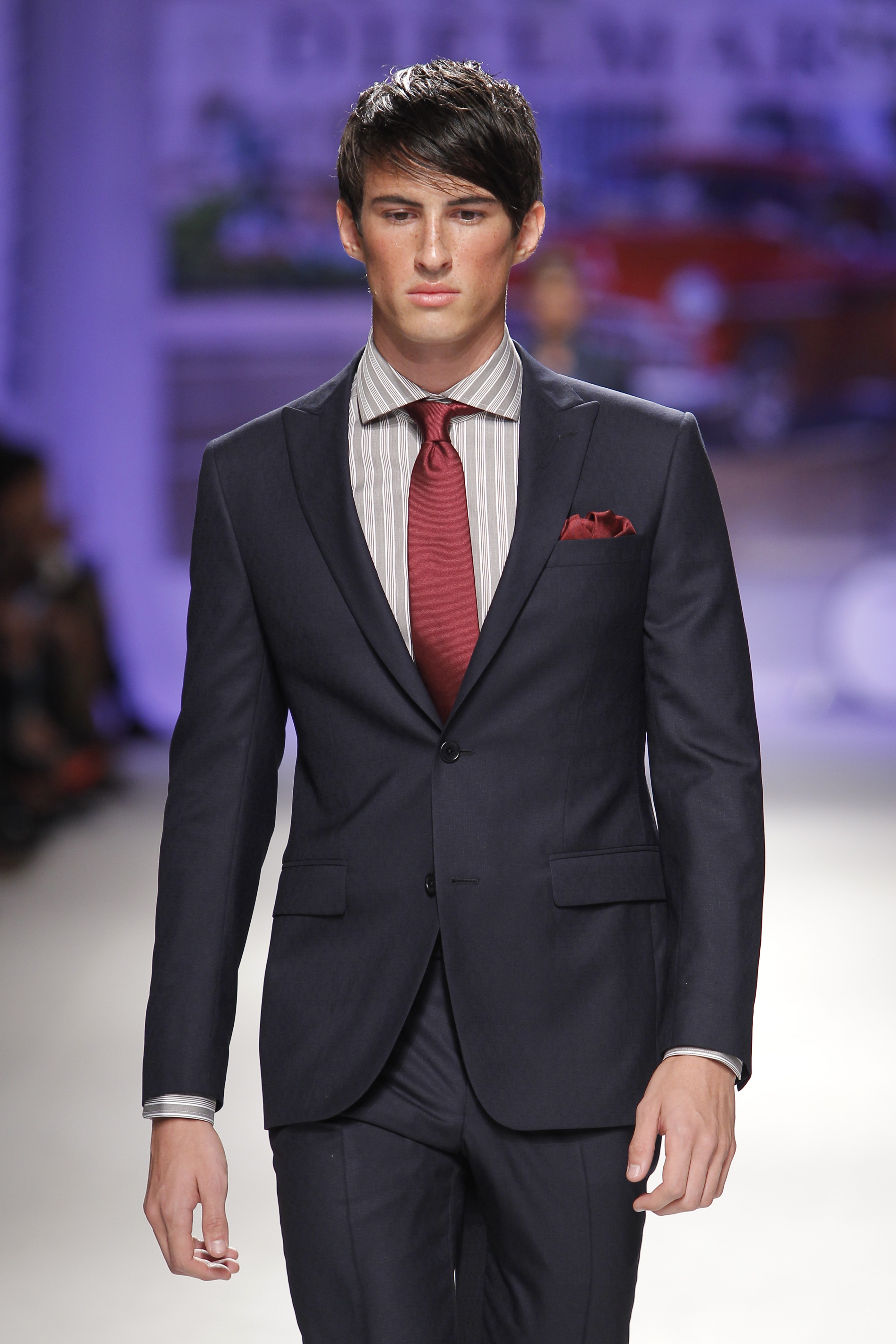 Os fatos slim fit são em lã/seda, lãs Super 130’s, 150’s e 170’s, sempre com um aspeto bastante moderno e minimalista.