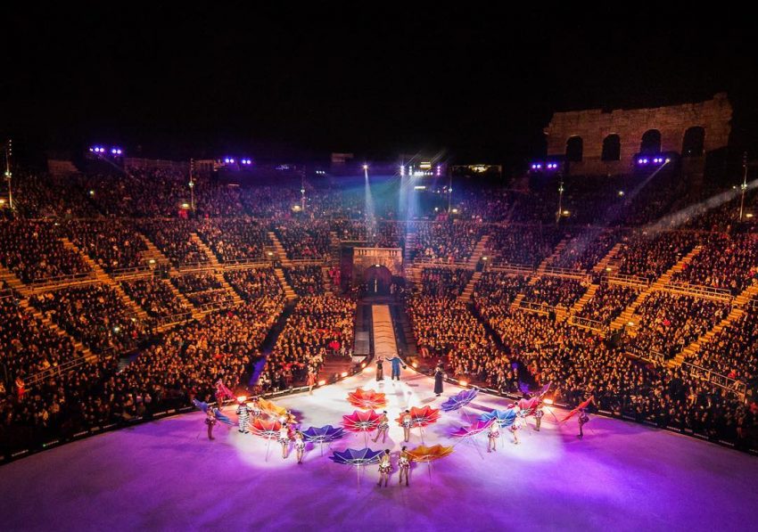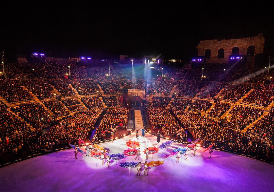 É um espetáculo de patinagem artística que alia a ópera ao musical pop e tem o cunho da Intimissimi. O evento anual da marca de lingerie realizou-se na noite desta sexta-feira na Arena di Verona, cidade de Itália.