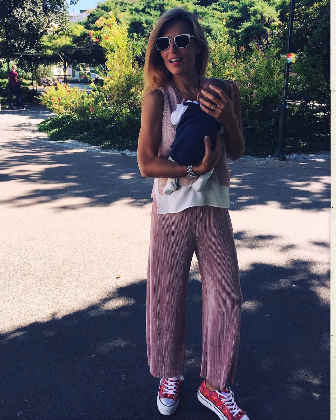 Este fim de semana, Ana e o marido Hugo Madeira aproveitaram o bom tempo que se fez sentir para dar um passeio no jardim com o recém-nascido.