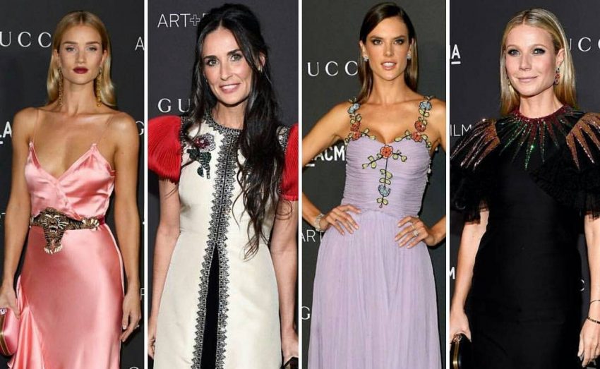 As atrizes Demi Moore, Salma Hayek, Gwyneth Paltrow, Melanie Griffith, Zoe Saldana e Brie Larson, as modelos Alessandra Ambrósio, Kate Upton e Rosie Huntington-Whiteley, a cantora Courtney Love, entre tantos outros nomes, passaram pela passadeira vermelha em Los Angeles.