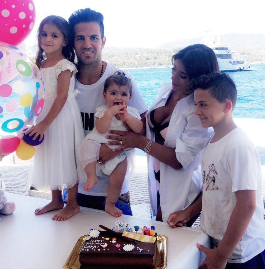 Cesc Fàbregas, de 28 anos, e a mulher Daniella Semaan, de 41, também são pais de Lia, de dois anos.