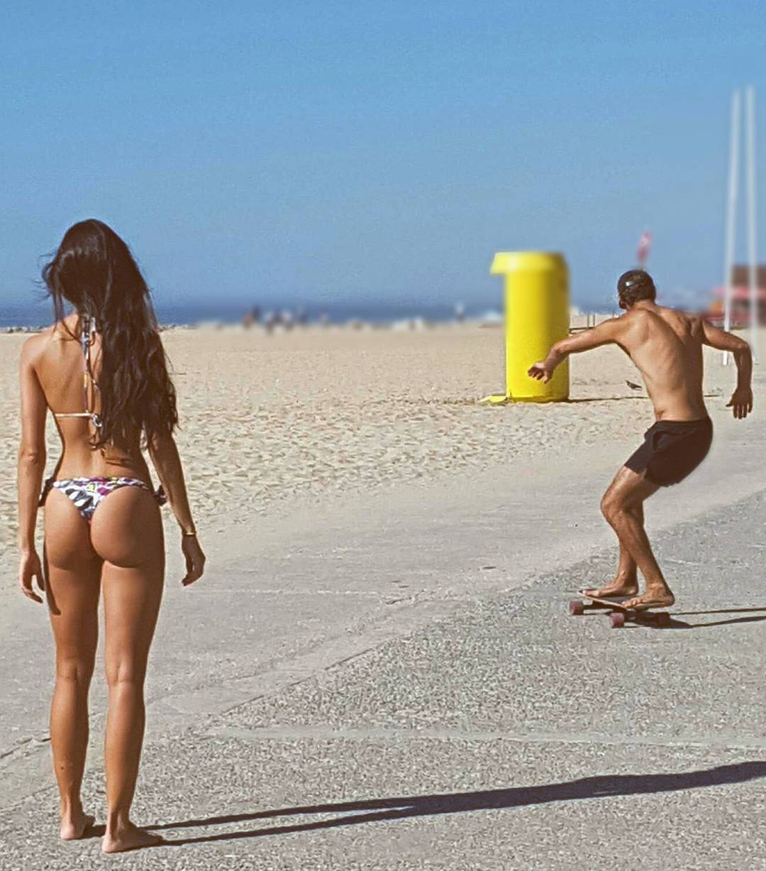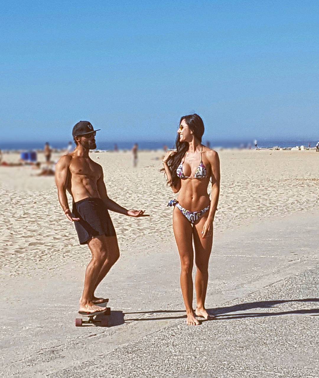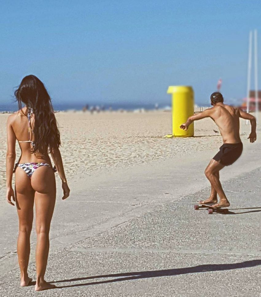 Aproveitando simultaneamente os dias de calor no nosso país, o casal tem sido visitante assíduo das praias do norte do país, onde passeiam as suas figuras esculturais: Kelly de biquíni e Pedro no skate ou na prancha de surf.