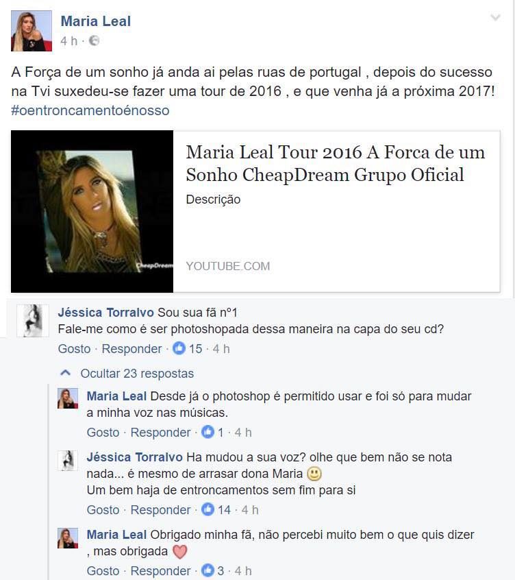 Apresentou-se aos portugueses em janeiro último como Maria D’Eça. Namorava com Tiago Ginga mas foi trocada por Bernardina Brito no decorrer do reality show da TVI, “A Quinta – Desafio”. Aceitou dar a cara e surgiu numa Gala desse programa, onde acabou, sem surpresa, por ser humilhada. Agora, voltou ao grande ecrã para apresentar o seu projeto musical, igualmente na estação de Queluz de Baixo, mas no programa “Você na TV” e sob a capa de Maria Leal. As coisas não lhe correram muito melhor do que na primeira aparição…