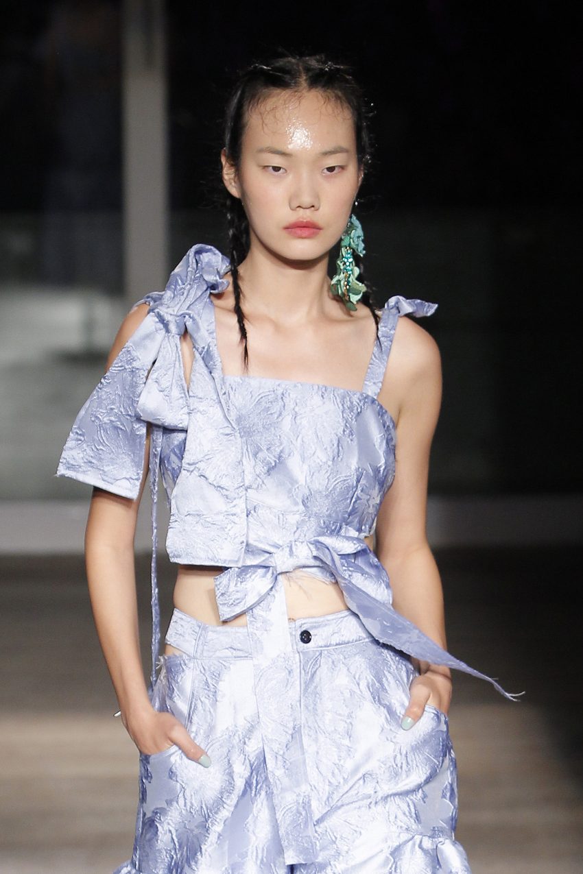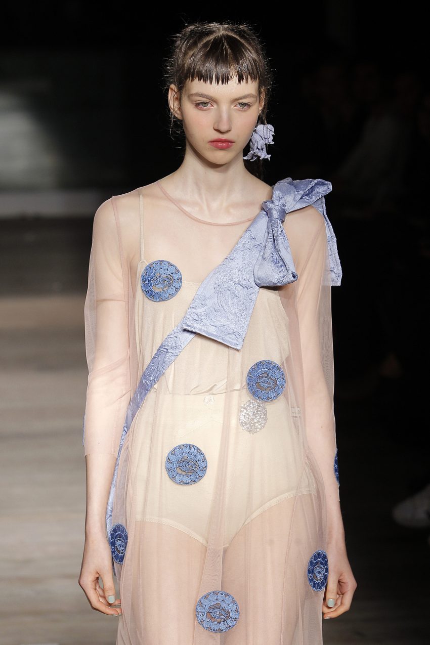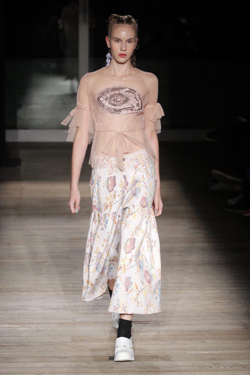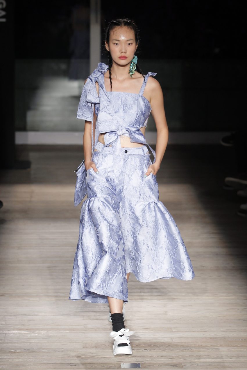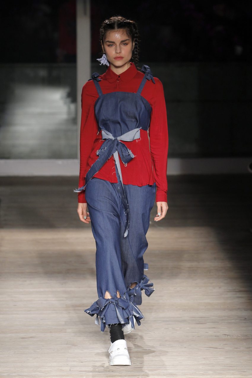 Na noite inaugural, a criadora – que se inspirou na moda vitoriana para a coleção “I’ve Got My Eyes On You” (‘Eu tenho os meu olhos em ti”) – mostrou um leque de peças com silhuetas volumosas e ‘oversized’ [tamanhos grandes], com muitos laços e folhos.