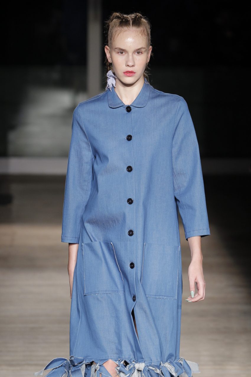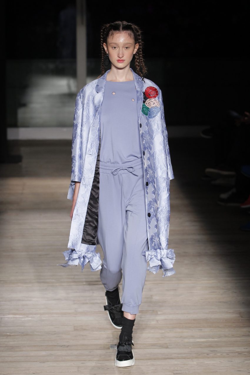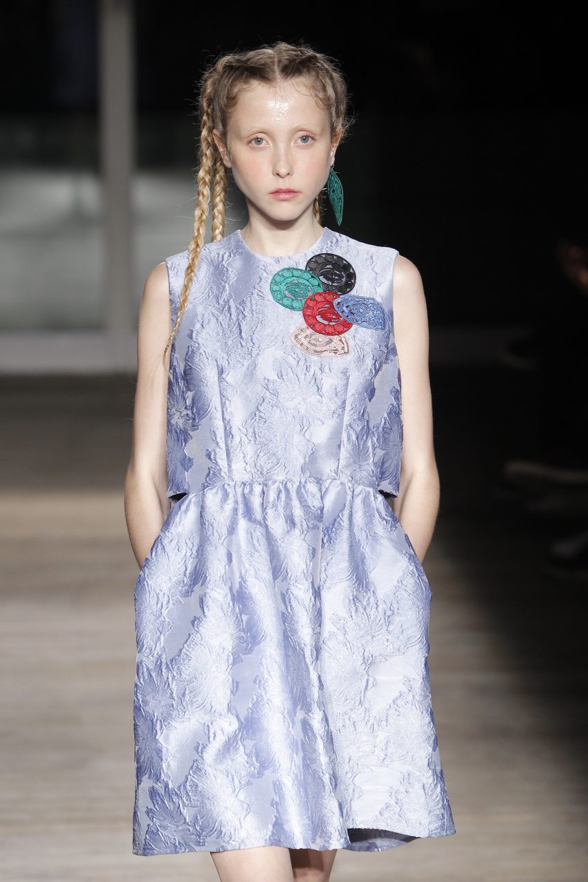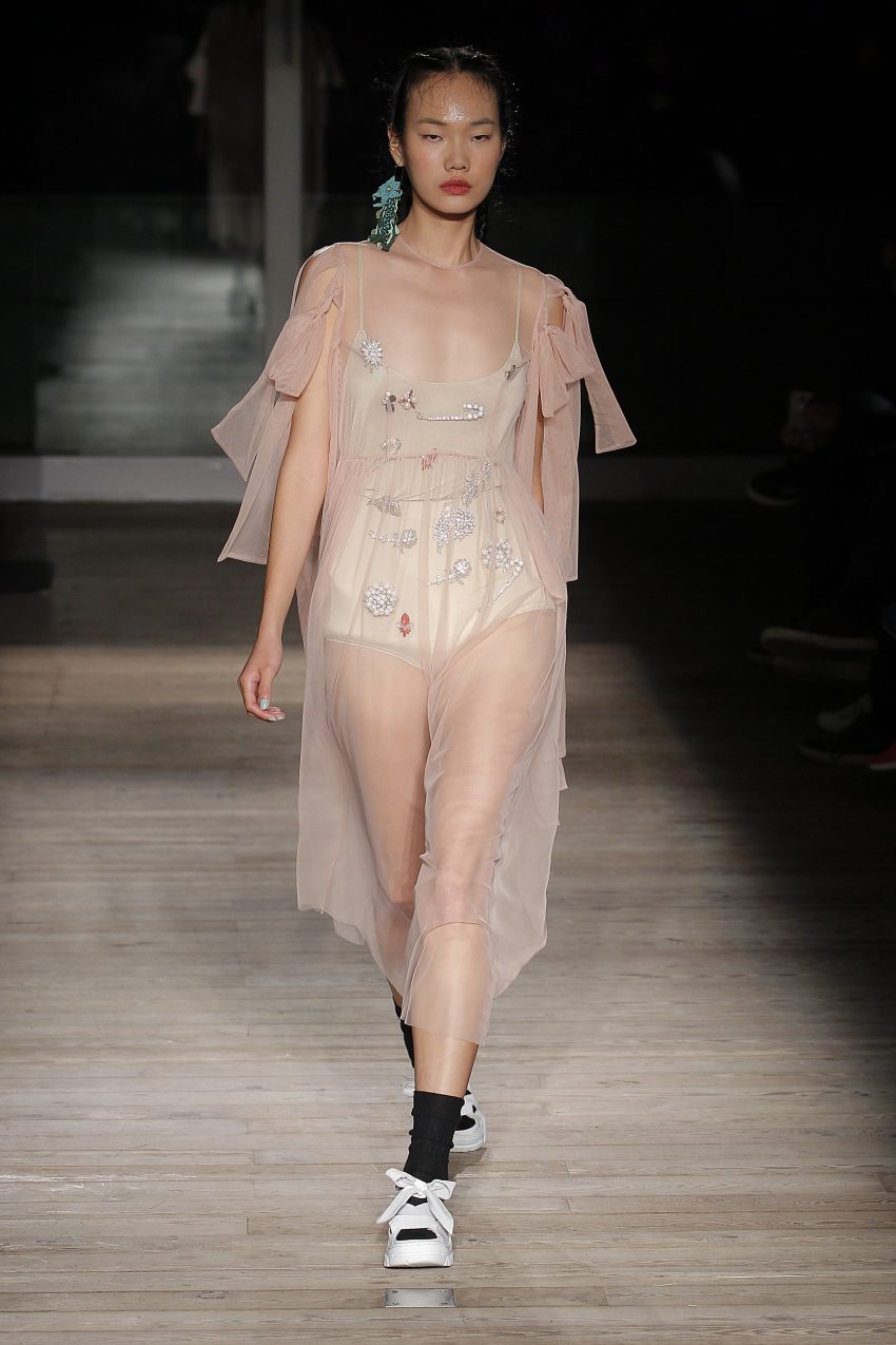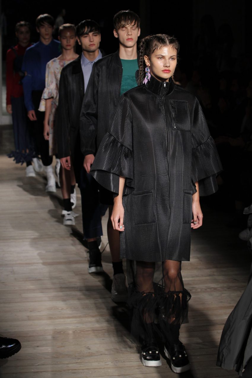 Na noite inaugural, a criadora – que se inspirou na moda vitoriana para a coleção “I’ve Got My Eyes On You” (‘Eu tenho os meu olhos em ti”) – mostrou um leque de peças com silhuetas volumosas e ‘oversized’ [tamanhos grandes], com muitos laços e folhos.