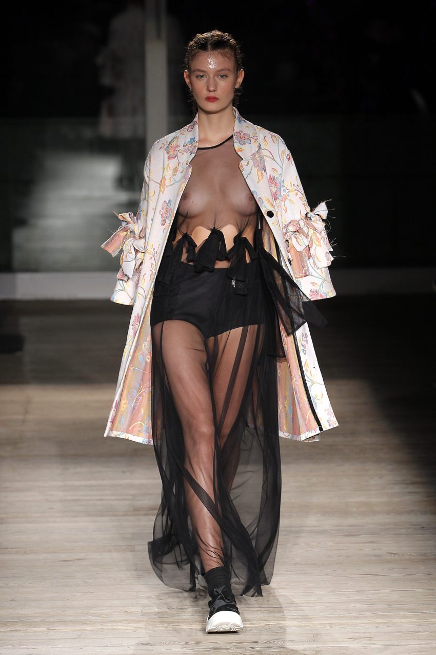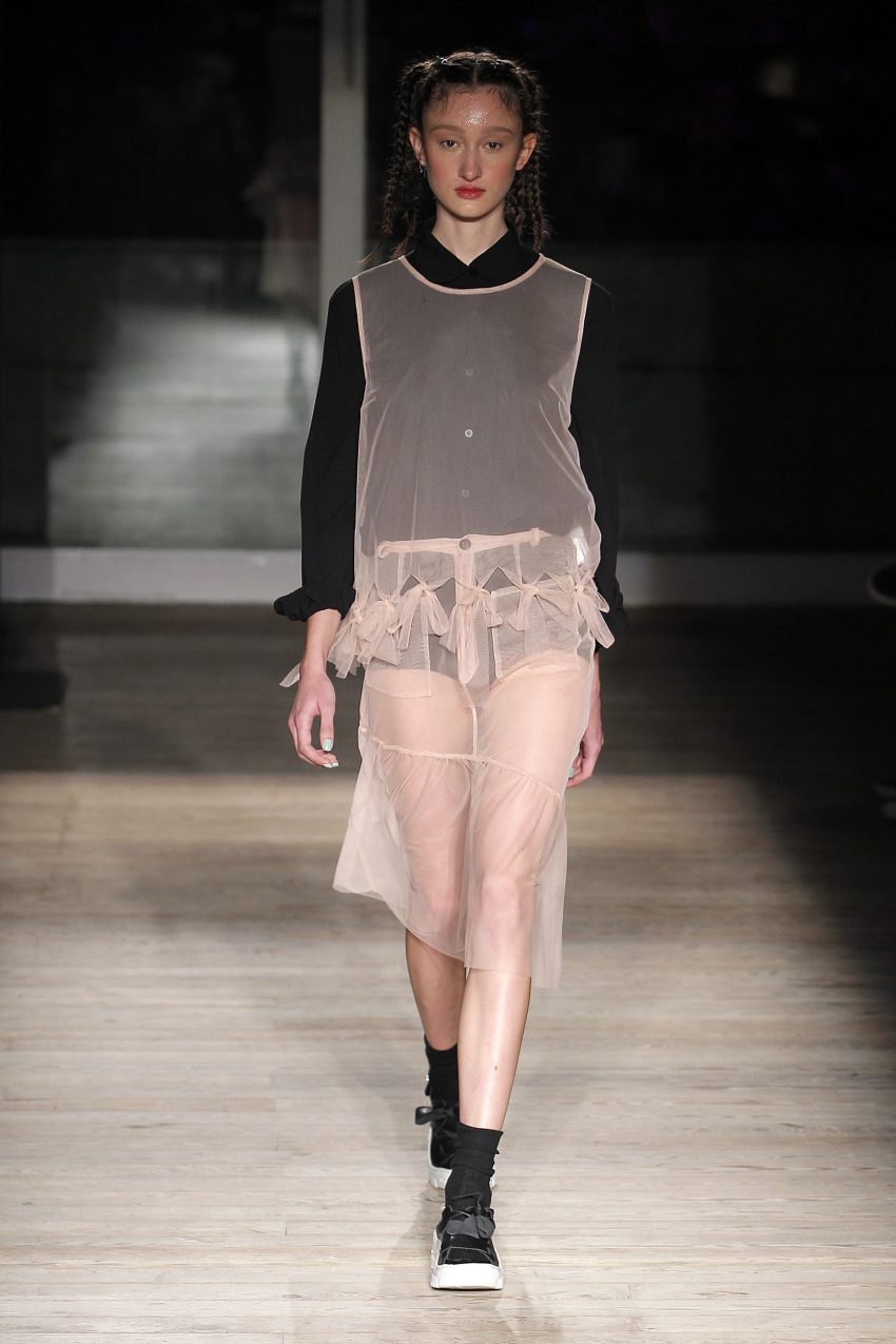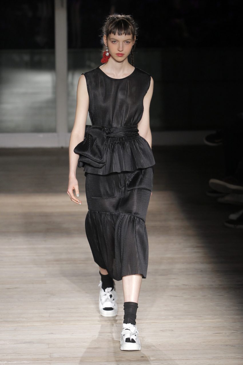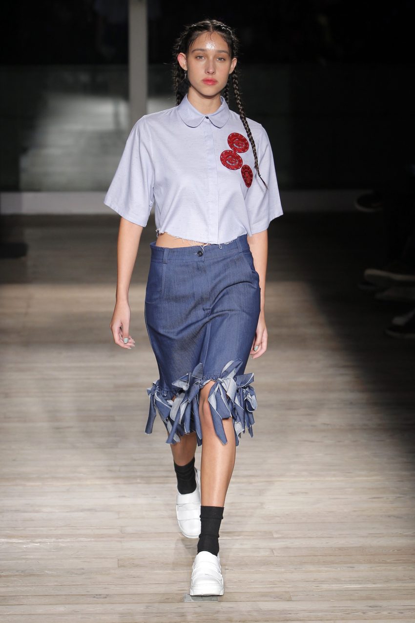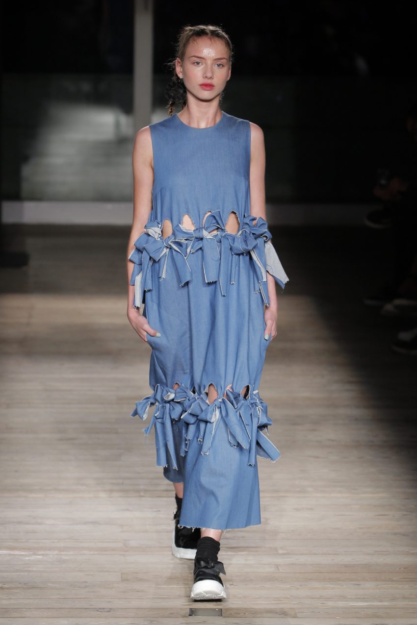 Na noite inaugural, a criadora – que se inspirou na moda vitoriana para a coleção “I’ve Got My Eyes On You” (‘Eu tenho os meu olhos em ti”) – mostrou um leque de peças com silhuetas volumosas e ‘oversized’ [tamanhos grandes], com muitos laços e folhos.