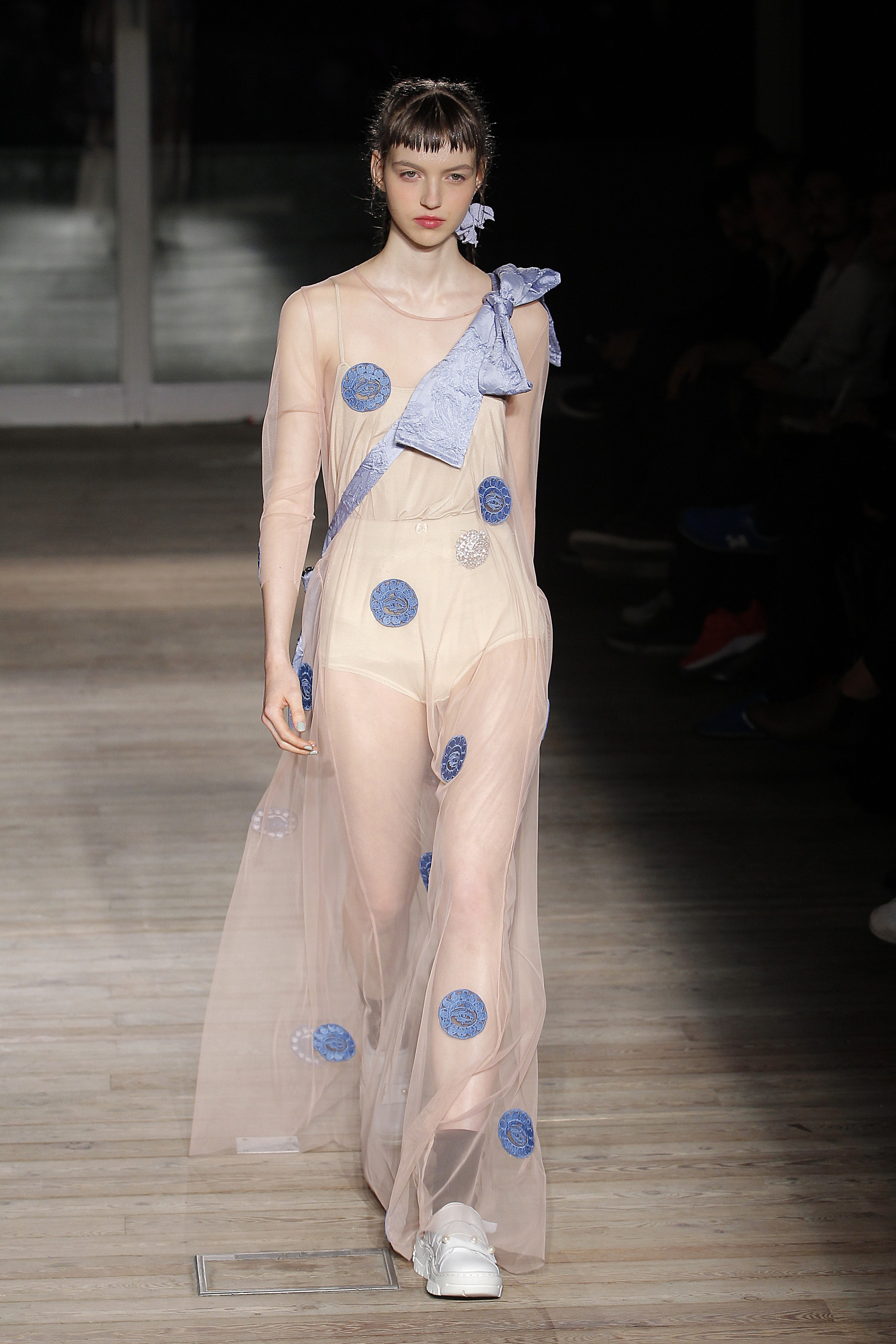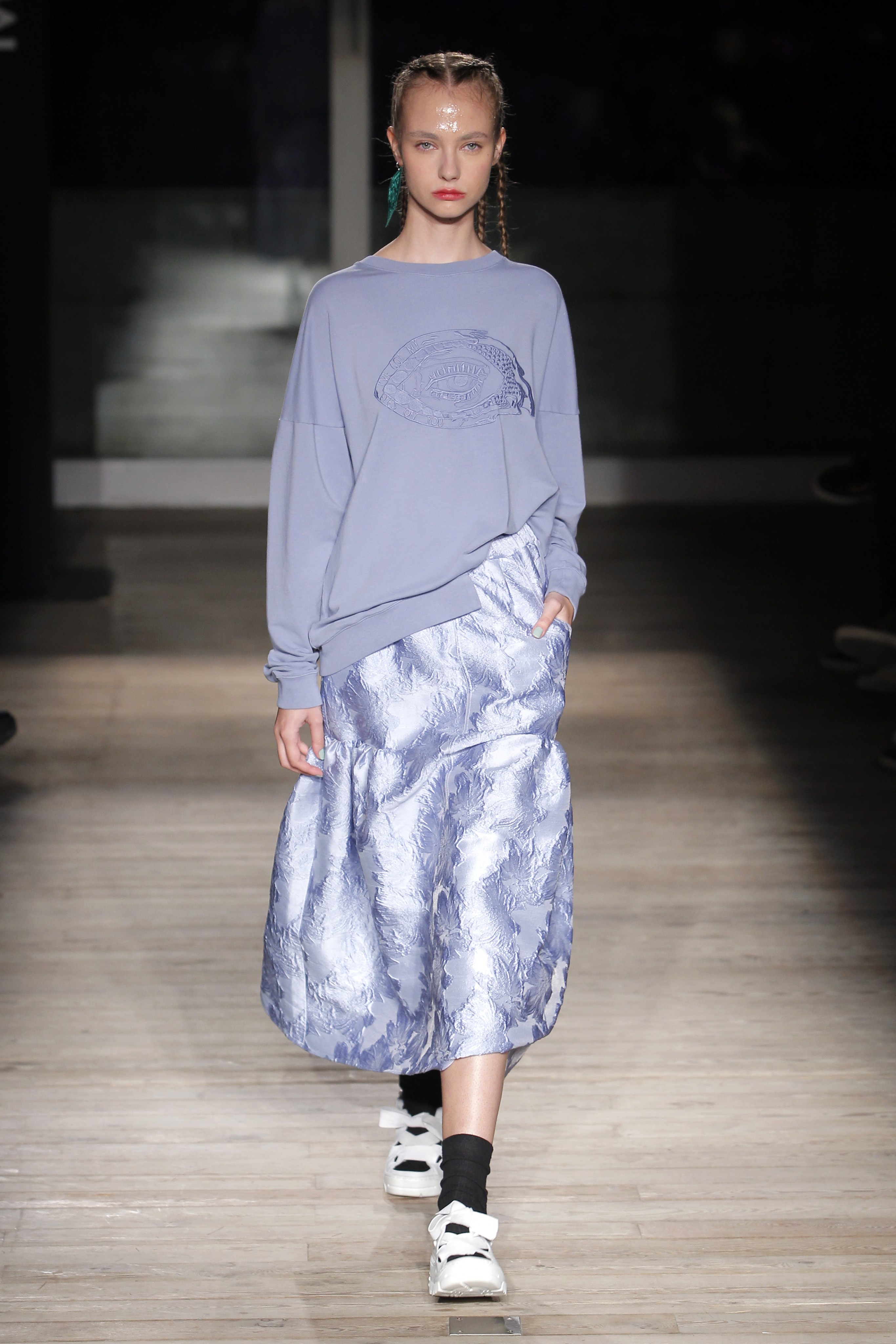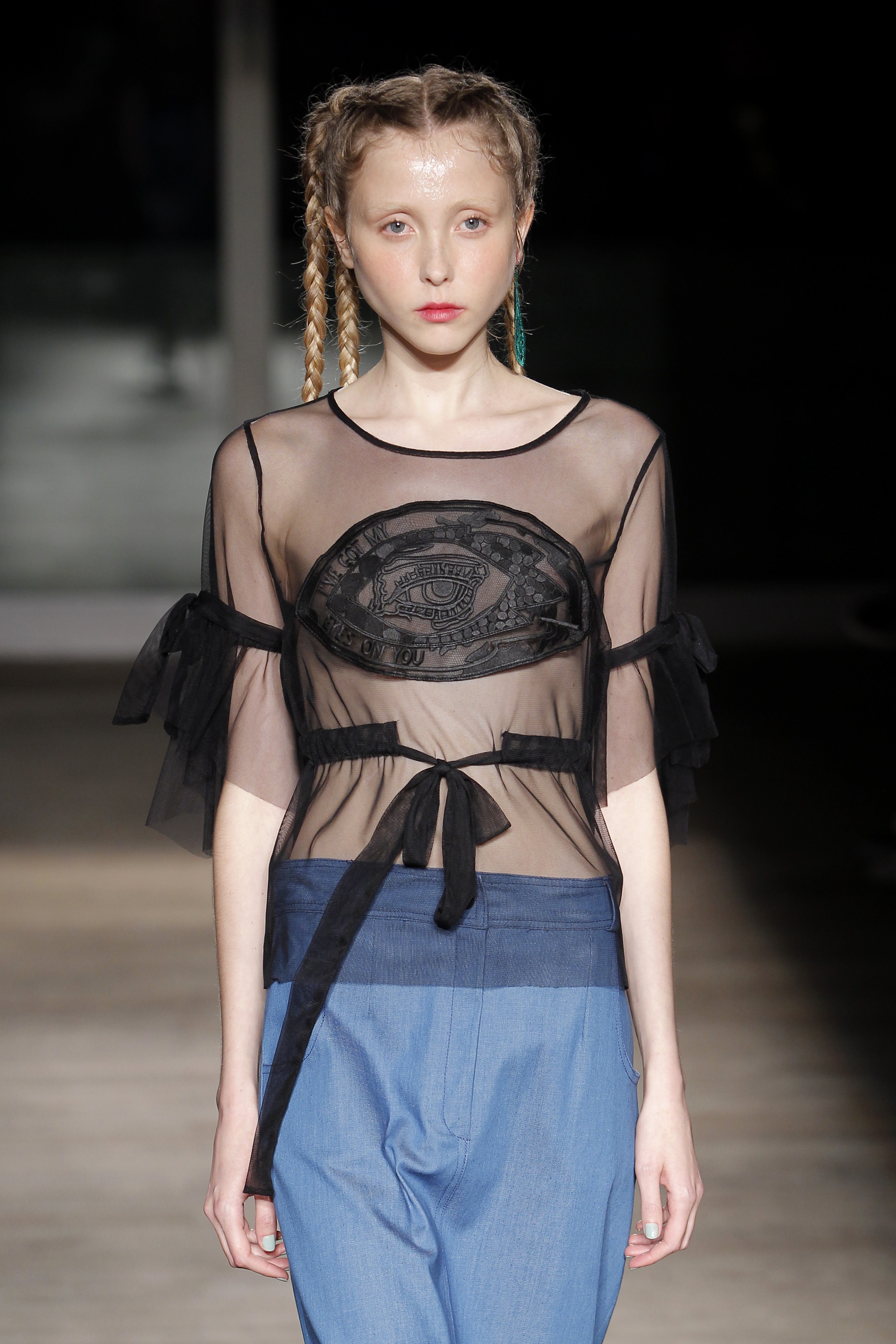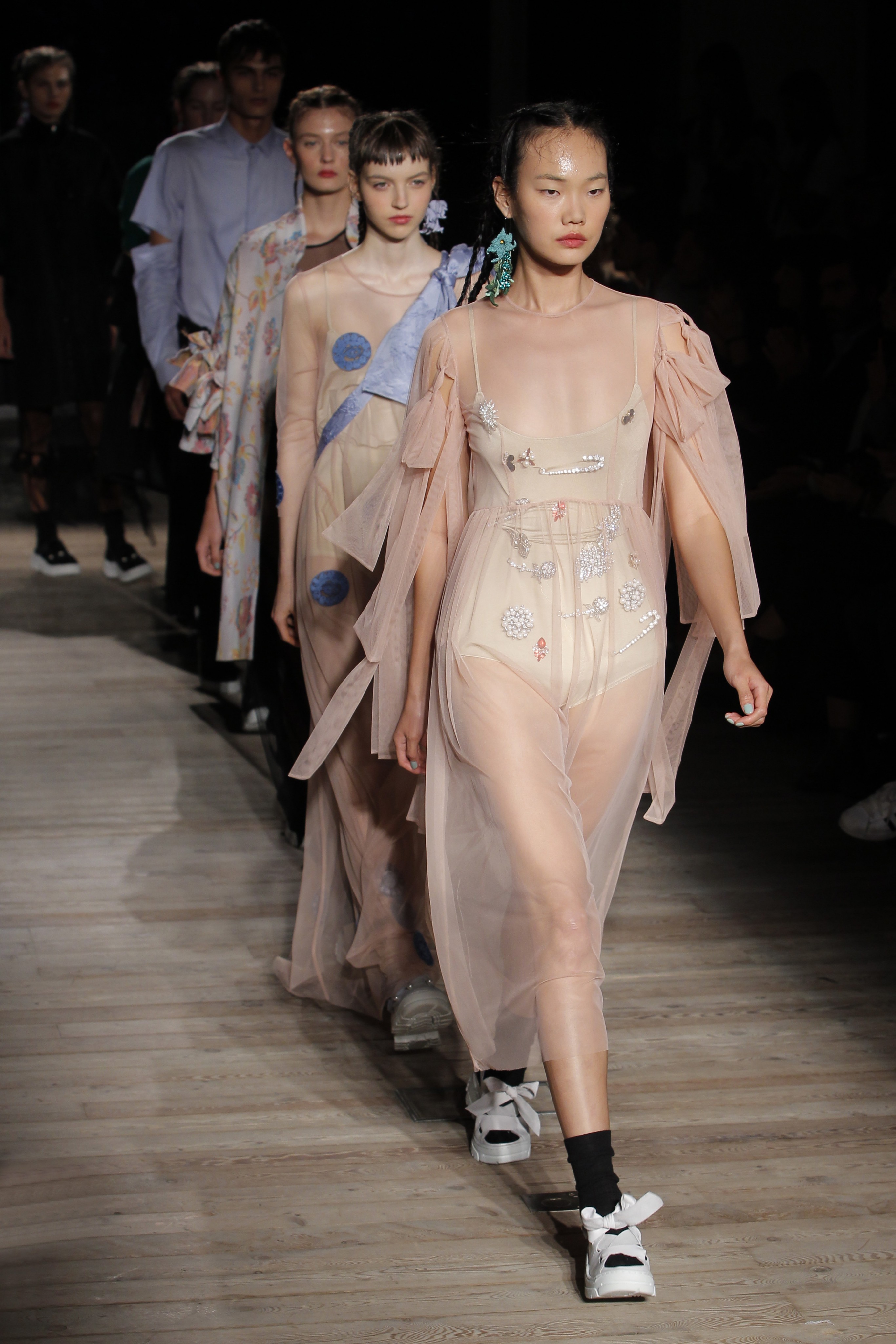 Na noite inaugural, a criadora – que se inspirou na moda vitoriana para a coleção “I’ve Got My Eyes On You” (‘Eu tenho os meu olhos em ti”) – mostrou um leque de peças com silhuetas volumosas e ‘oversized’ [tamanhos grandes], com muitos laços e folhos.