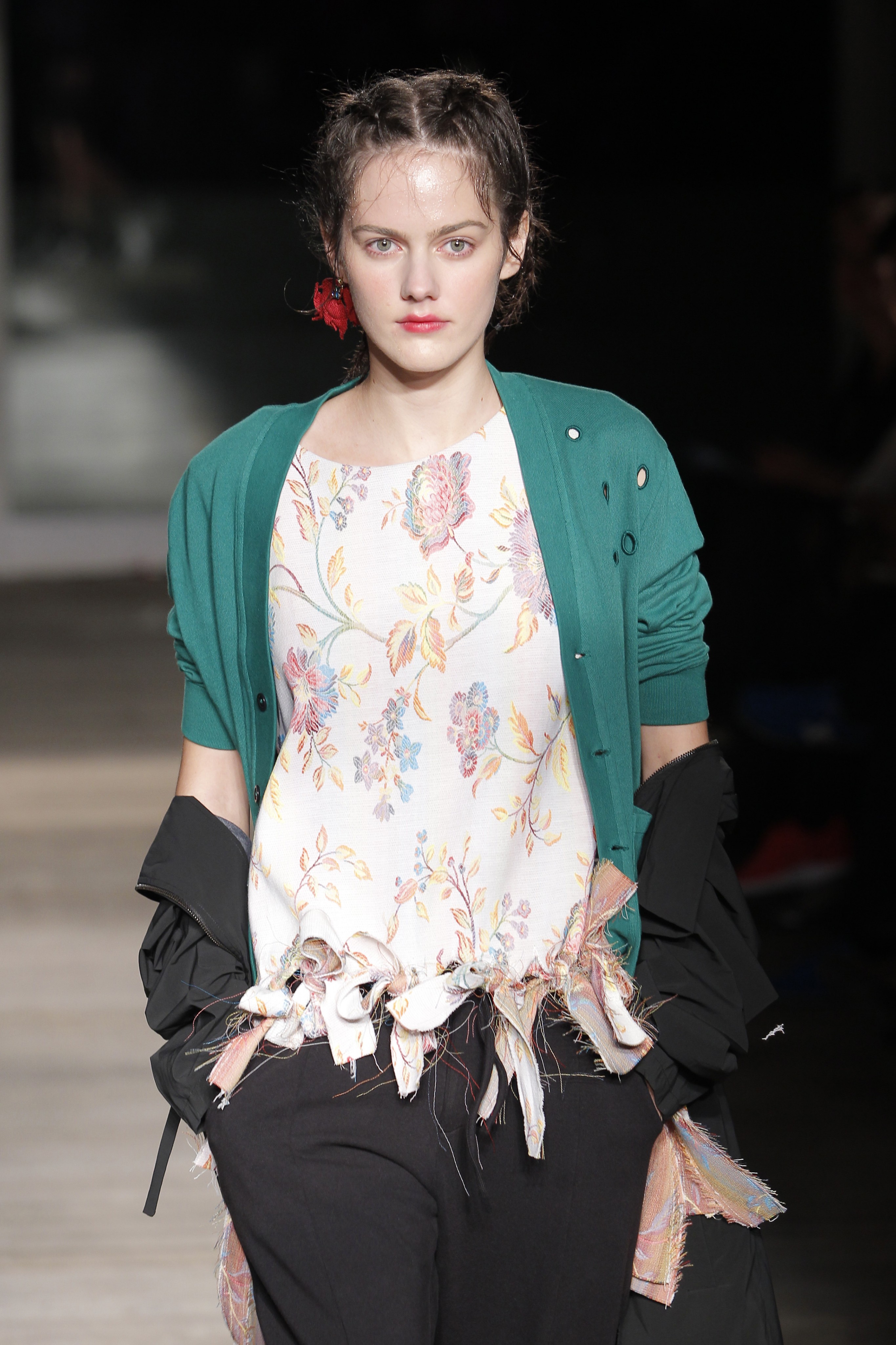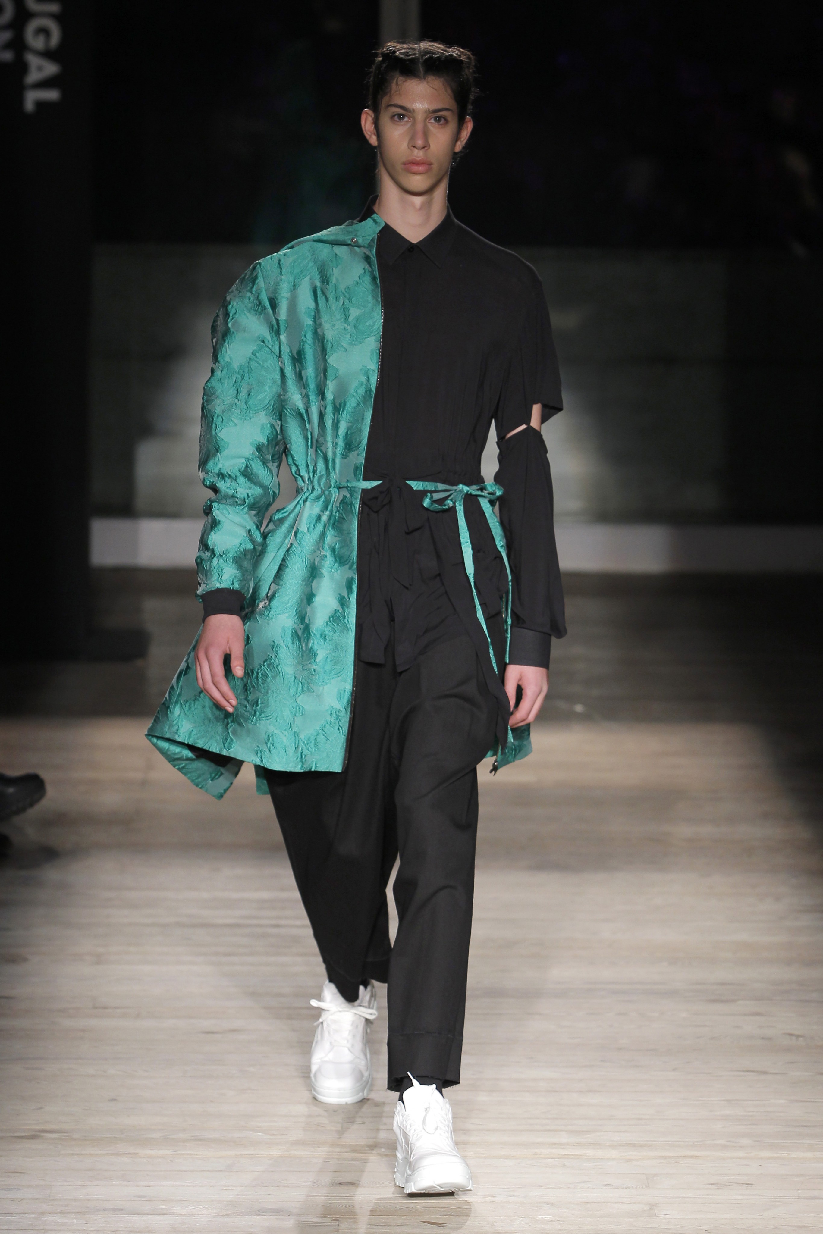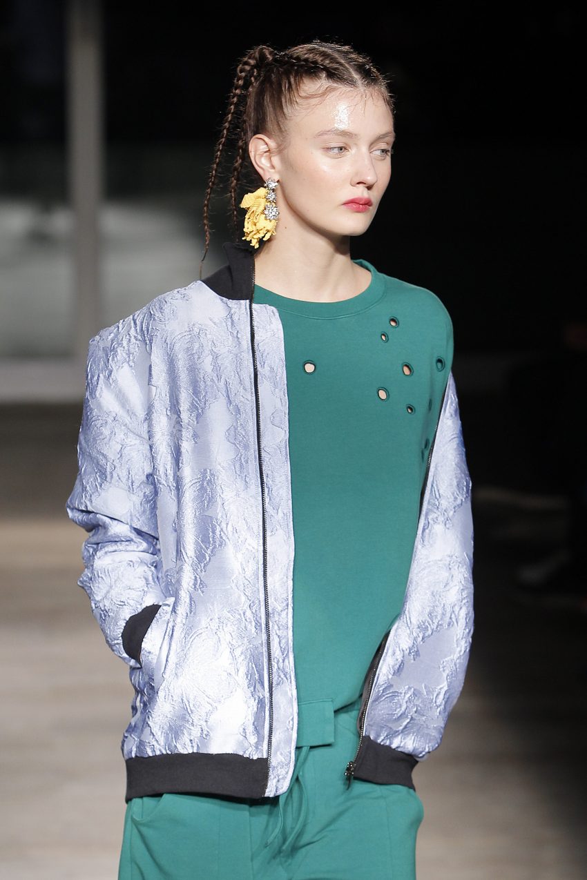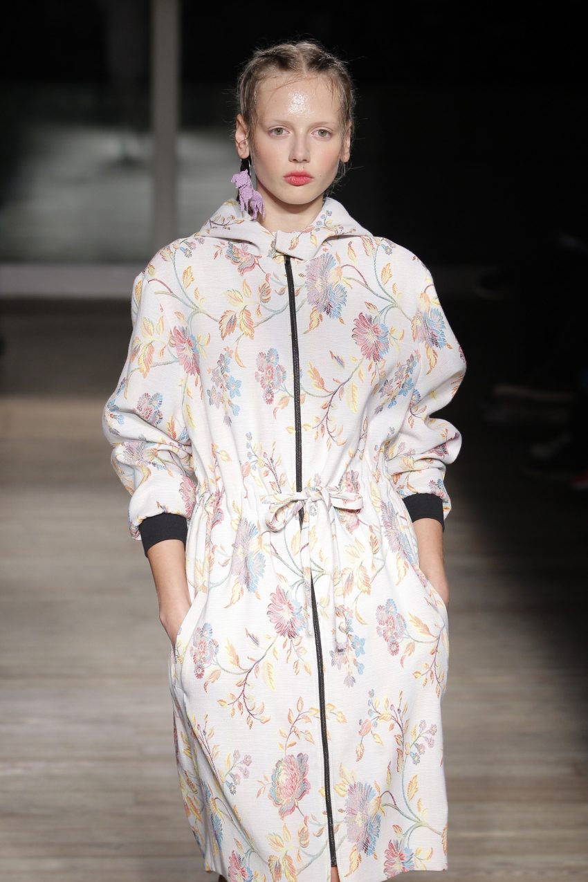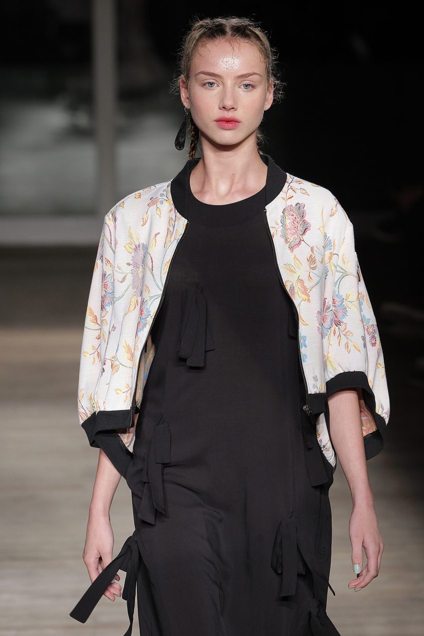Com “o universo da joia vitoriana ‘lover’s eye’”, Alexandra Moura apresentou looks “confortáveis e urbanos” dando particular destaque ao bordado em tule, à ganga e ao algodão que se conjugam em peças com um padrão ‘jacquard’ com motivos florais onde o preto e o verde esmeralda se juntam às restantes cores.